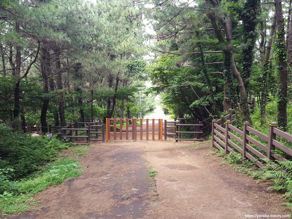 산책로 출입구와 "송악산과 99봉" 안내판을 지나면 송악산 둘레길은 끝이 난다.