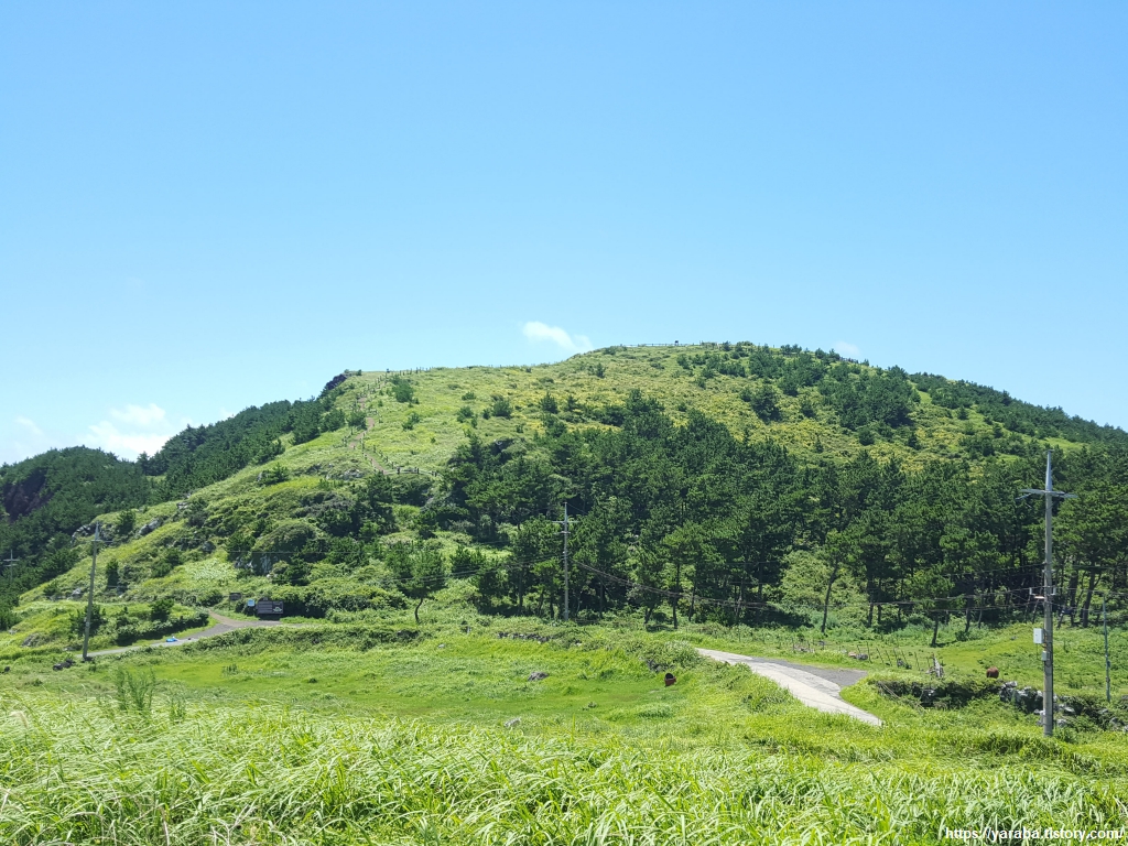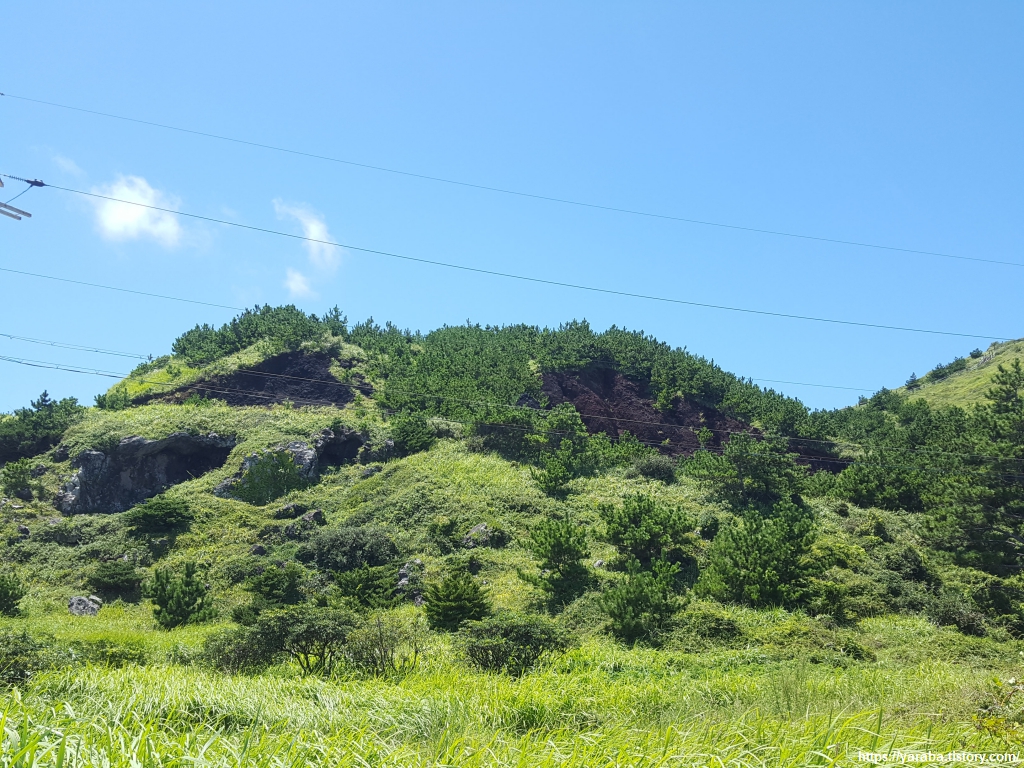 송악산은 원래 해송이 많아 송악산이라 이름이 붙여졌지만, 일제 강점기에 군사 기지를 만든다며 수많은 나무를 태워버려 곳곳에 풀만 무성한 곳이 많다.