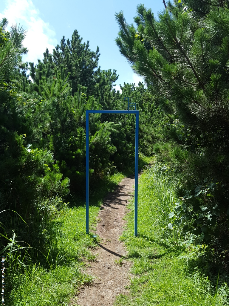 잘 가꾸어진 언덕 능선을 통하여 길을 이어간다. 올레길의 상징인 간세가 문 처럼 통과하는 형태는 처음이다.