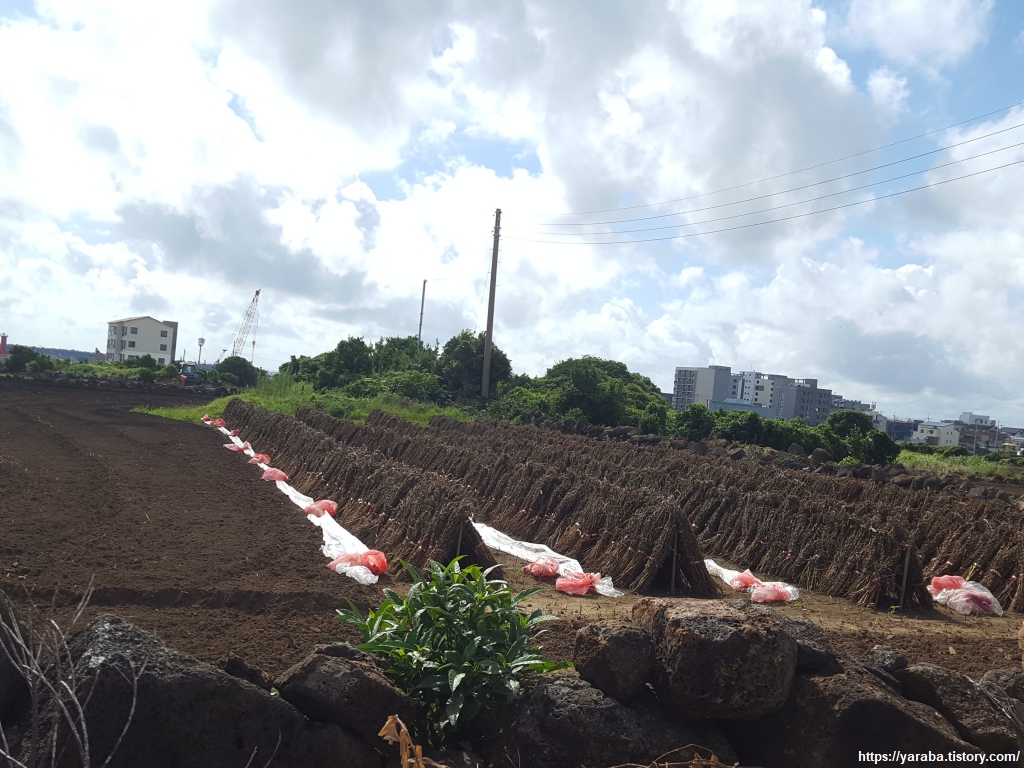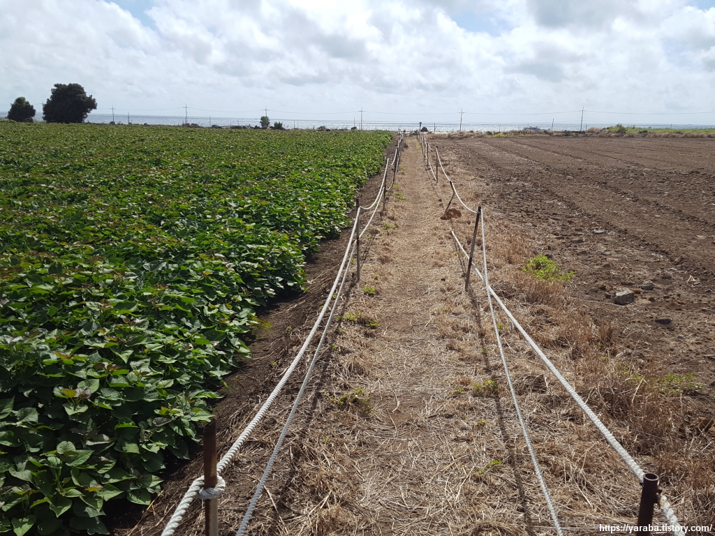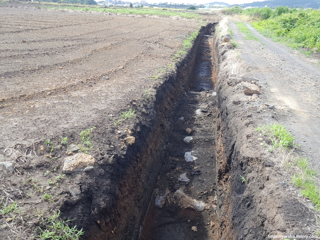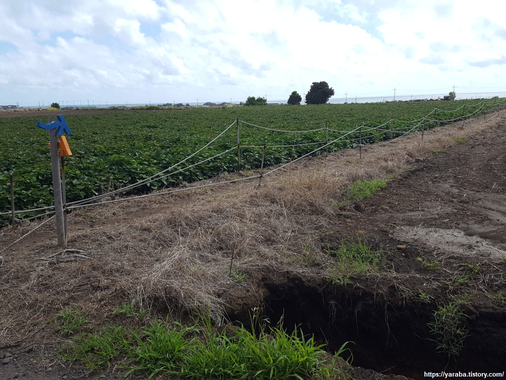 길과 밭 사이에 파 놓은 배수로도 독특하다. 내륙의 땅이라면 배수로를 저렇게 직각으로 파면 흙이 무너질 텐데 이곳은 마치 콘크리트를 타설해 놓은 것처럼 얌전히 있다. 이곳의 땅이 어떤 토양인지 조금은 짐작할 수 있게 하는 모습이다.