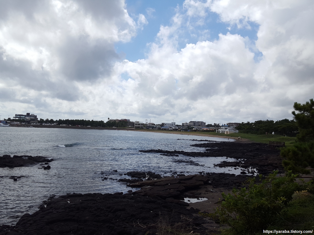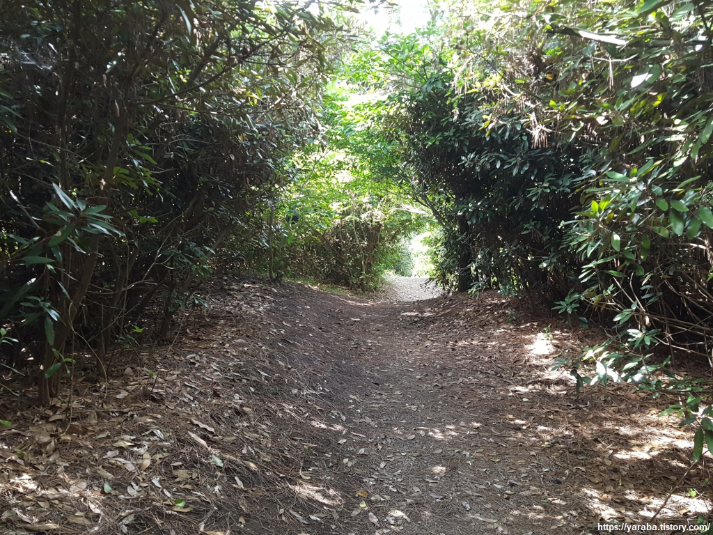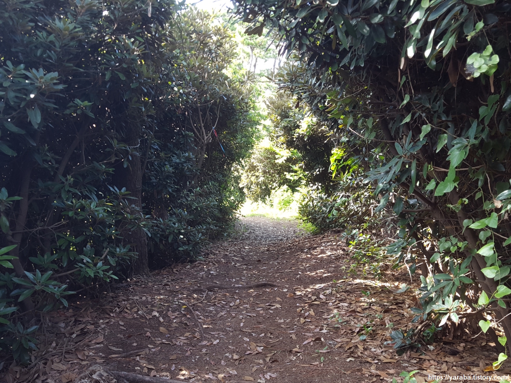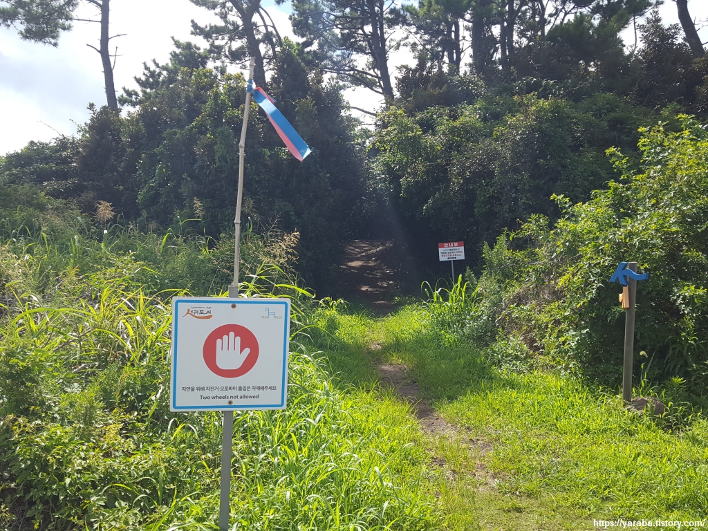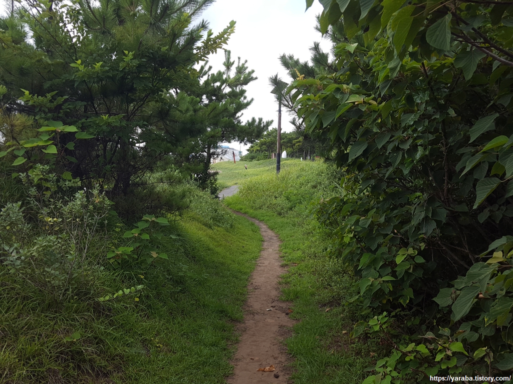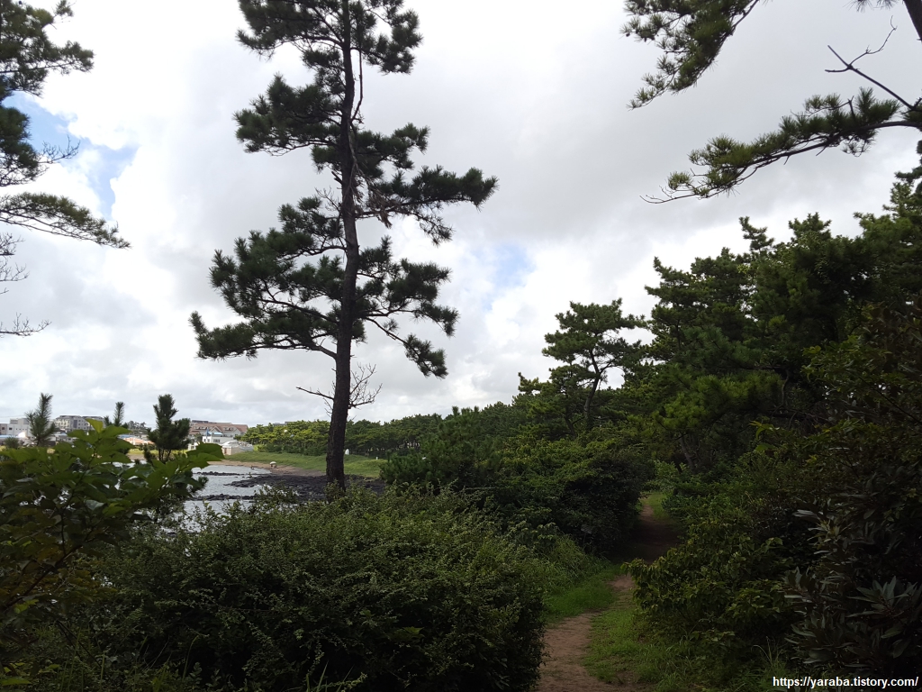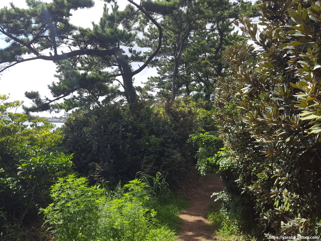 태양을 가려주는 숲길을 걷다 보니 멀리 하모 해수욕장이 보이기 시작한다.