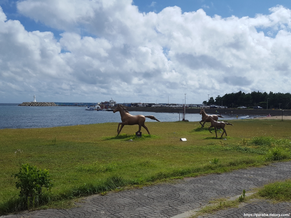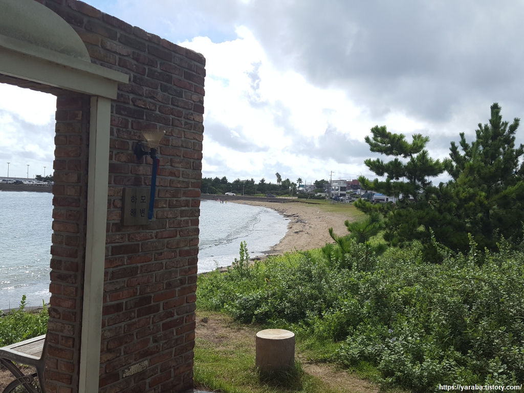 하모 해수욕장은 크지 않지만 운진항 방파제가 파도를 막고 있어서 잔잔하게 해수욕을 즐길 수 있는 곳이다.