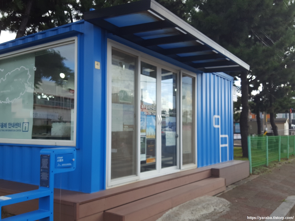 올레길 10코스가 끝나고 11코스가 시작되는 지점에는 올레 안내 센터가 있었는데 센터를 지키고 있던 분이 우리를 보고는 반갑게 맞이하러 나오셨지만 몸이 지친 우리는 그저 가벼운 인사만 건넬 수 있을 뿐 대화를 나눌 정신이 없었다. 뜨거운 더위에 푹 익어버린 우리는 빨리 마트에 가서 시원한 음료수 하나 마시고 싶은 마음이 간절할 뿐이었다. 그래도 코스를 마무리하고 근처 마트에서 장을 보고 숙소를 찾아가는 마음은 가볍다.