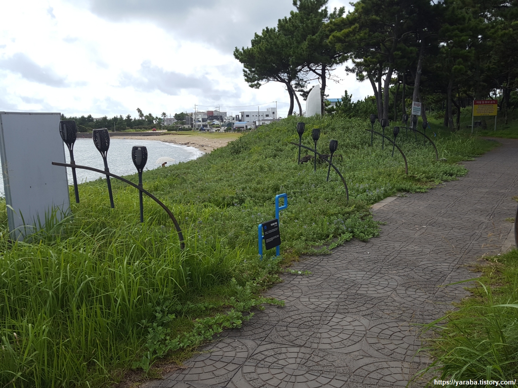 여러 조형물과 시설이 설치된 하모 해수욕장은 다른 유명 해수욕장에 비하면 많이 한산한 편이었다. 관리가 잘 되지 않아 사람이 없는지, 사람이 없어서 관리가 부족한지 알 수 없는 일이다.