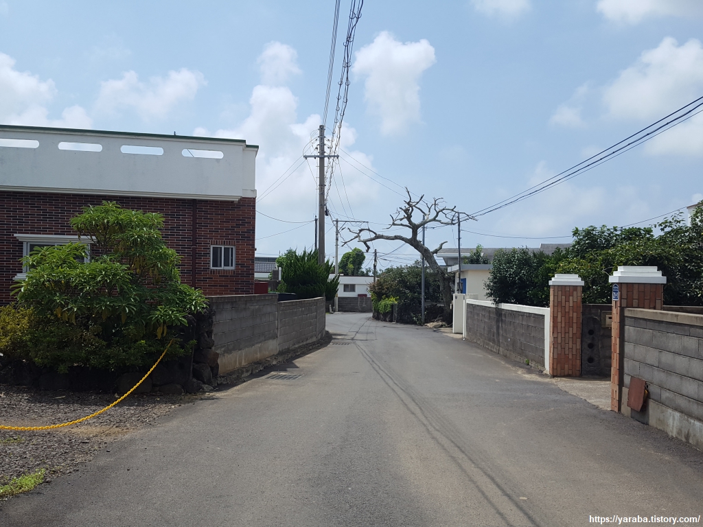 인향동이라는 이름이 남아 있지만 지금은 인향동, 좌기동, 평지동을 합하여 무릉 2리라 부른다. 올레길은 11코스와 12코스를 걸으며 인향동 마을 회관, 좌기동 마을 회관, 평지동 마을 회관 인근을 차례대로 지난다. 커다란 나무가 마을에 진입하는 나그네를 포근하게 반겨준다. 커다란 나무를 잘 보존하고 있는 마을을 보면 늘 부럽다. 차 다니는데 불편하다고, 길 좁다고, 콩 더 심겠다고 마을 입구에 있던 나무를 댕강 잘라내는 마을에는 정이 붙지를 않는다.
