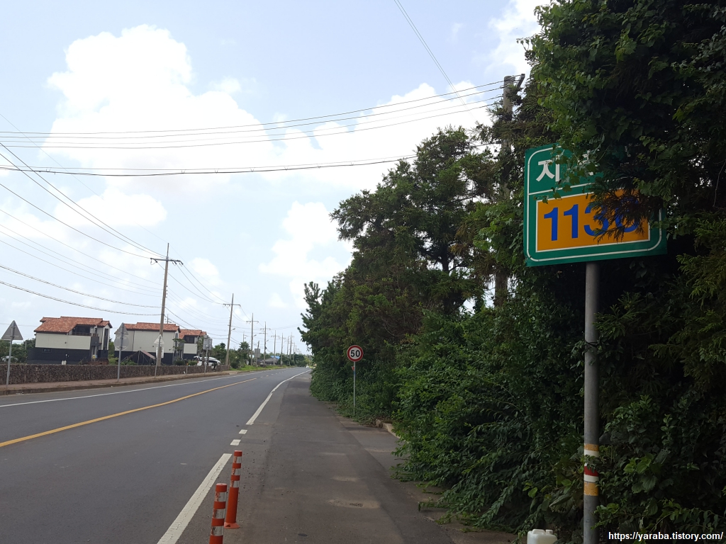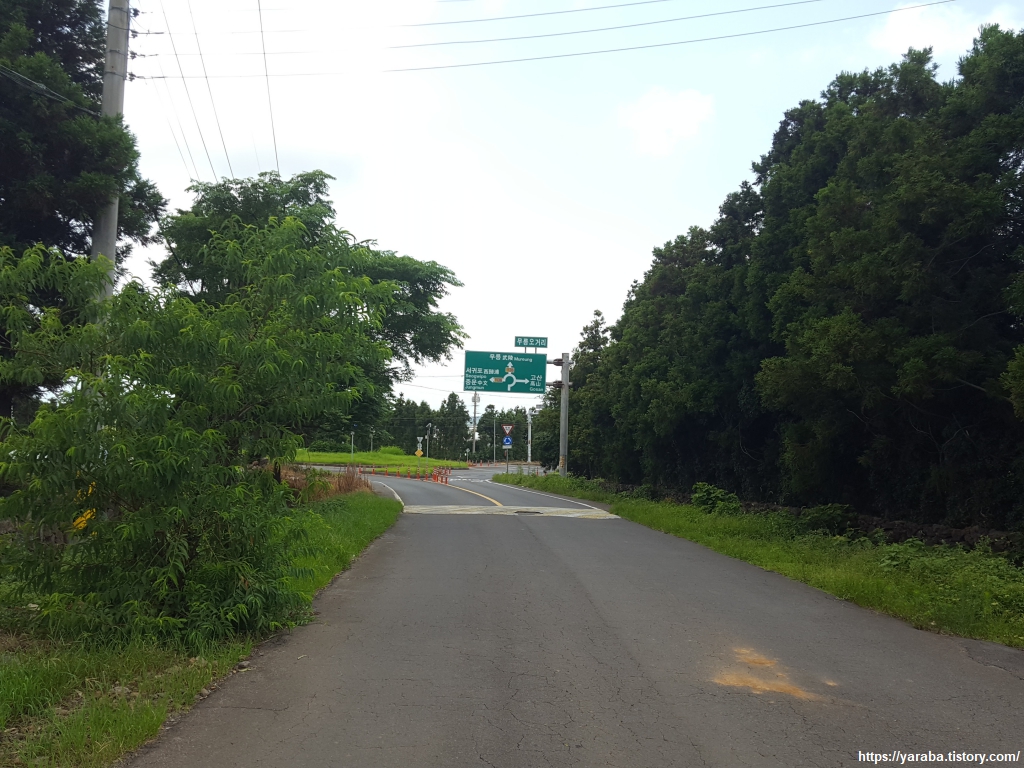 무릉 5 거리를 지나면 얼마 동안 1136번 지방로인 중산간서로를 따라 걷는다.