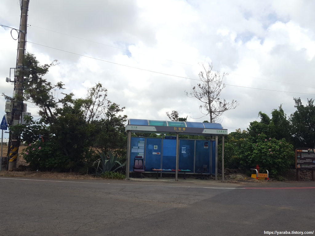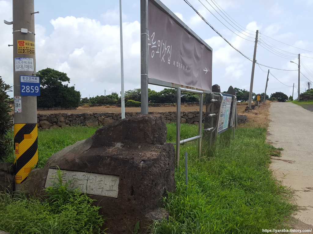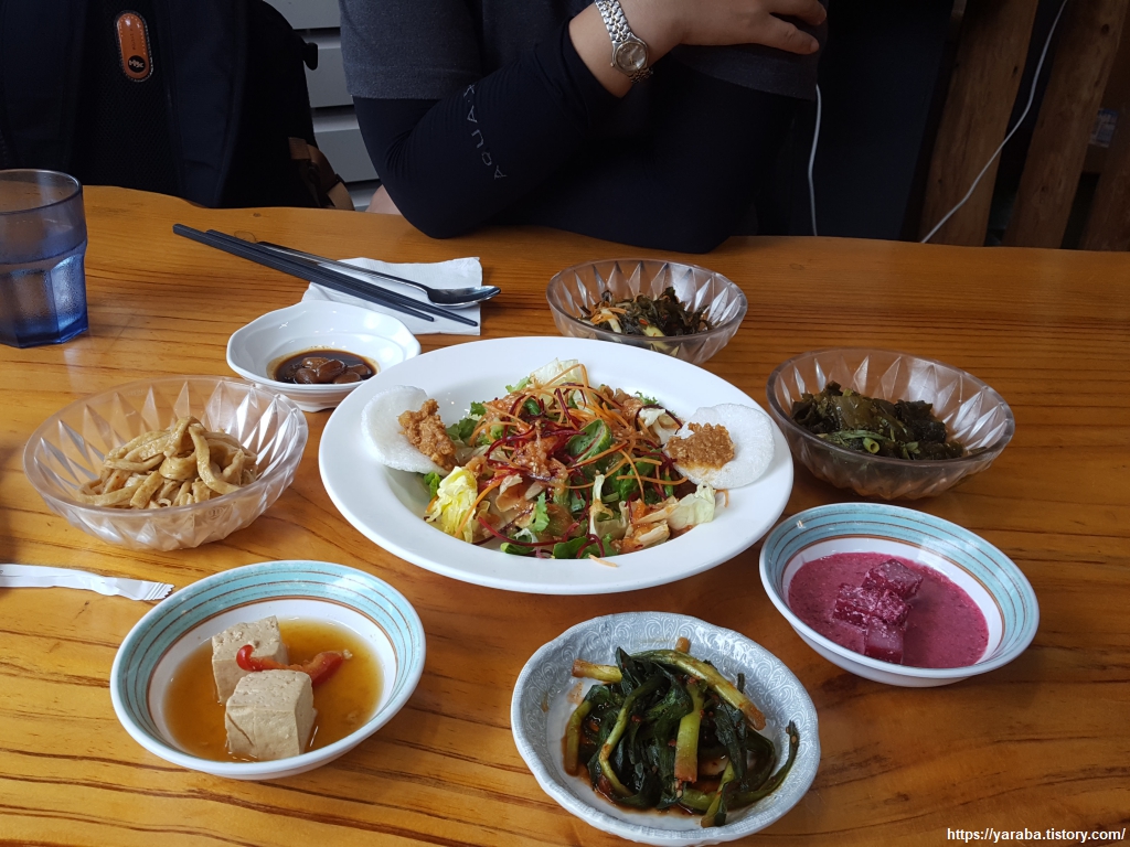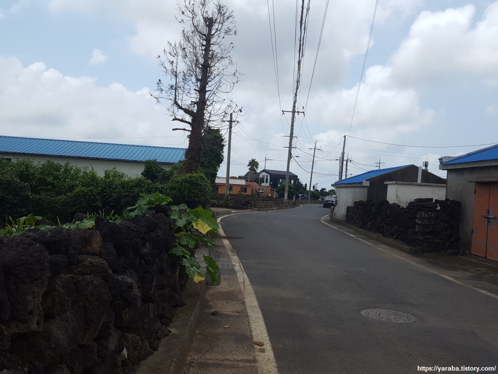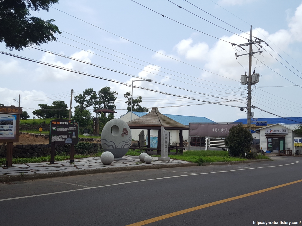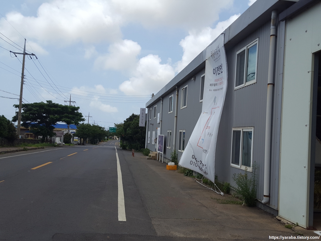 무릉인향로 마을길을 따라 걷다 보면 동일리 해안으로 이어지는 도로인 대한로를 가로지르게 되는데 그곳에 반가운 식당이 있었다. 앞서 신평리에서는 마음에 끌렸던 식당이 문을 닫아서 식사를 못하고 삼각김밥으로 대신했었는데 올레길 11코스 종점을 눈앞에 둔 우리는 교차로에 있는 식당에서 넉넉한 휴식도 갖고 앞으로 걸어야 할 올레길 12코스를 위한 충전의 시간을 갖기로 했다.