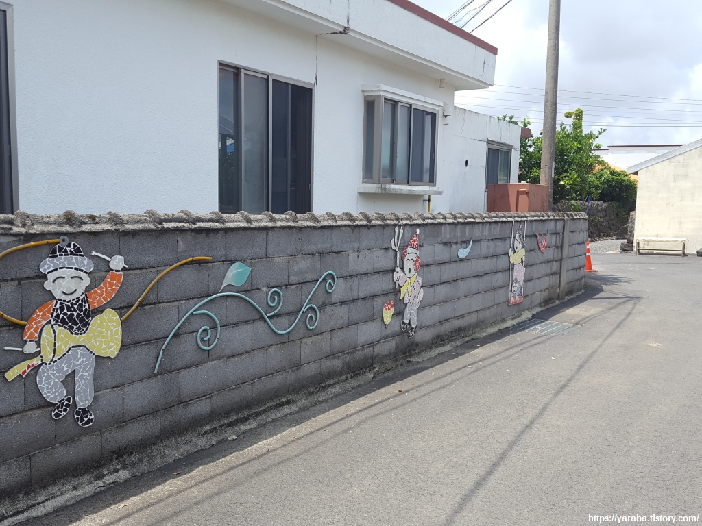 올레길은 벽면에 아기자기한 장식들을 붙여놓은 무릉인향로를 따라 걷는다. 마을 중간에 있는 커다란 팽나무 그늘에 앉아 잠시 쉬어 간다.