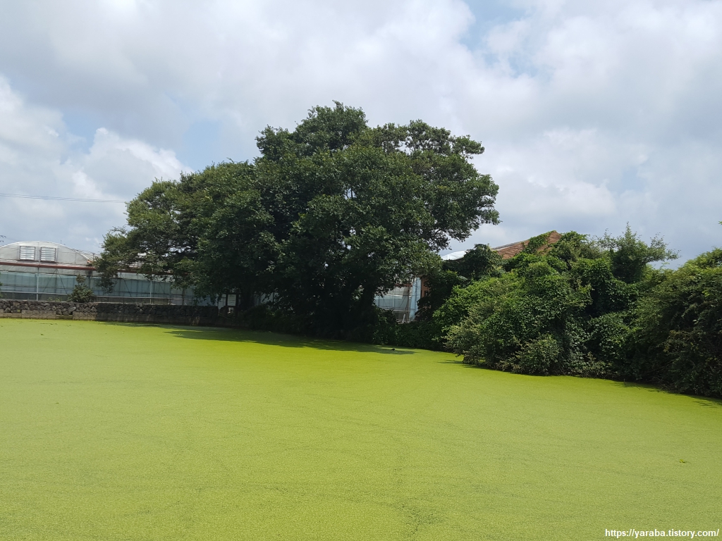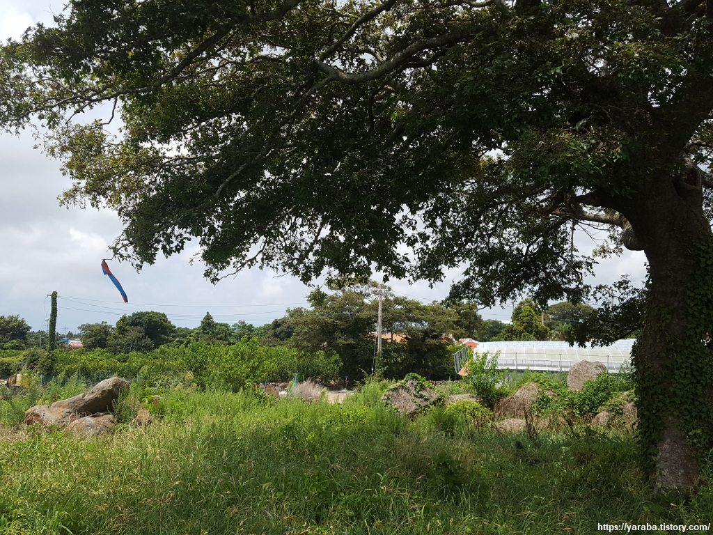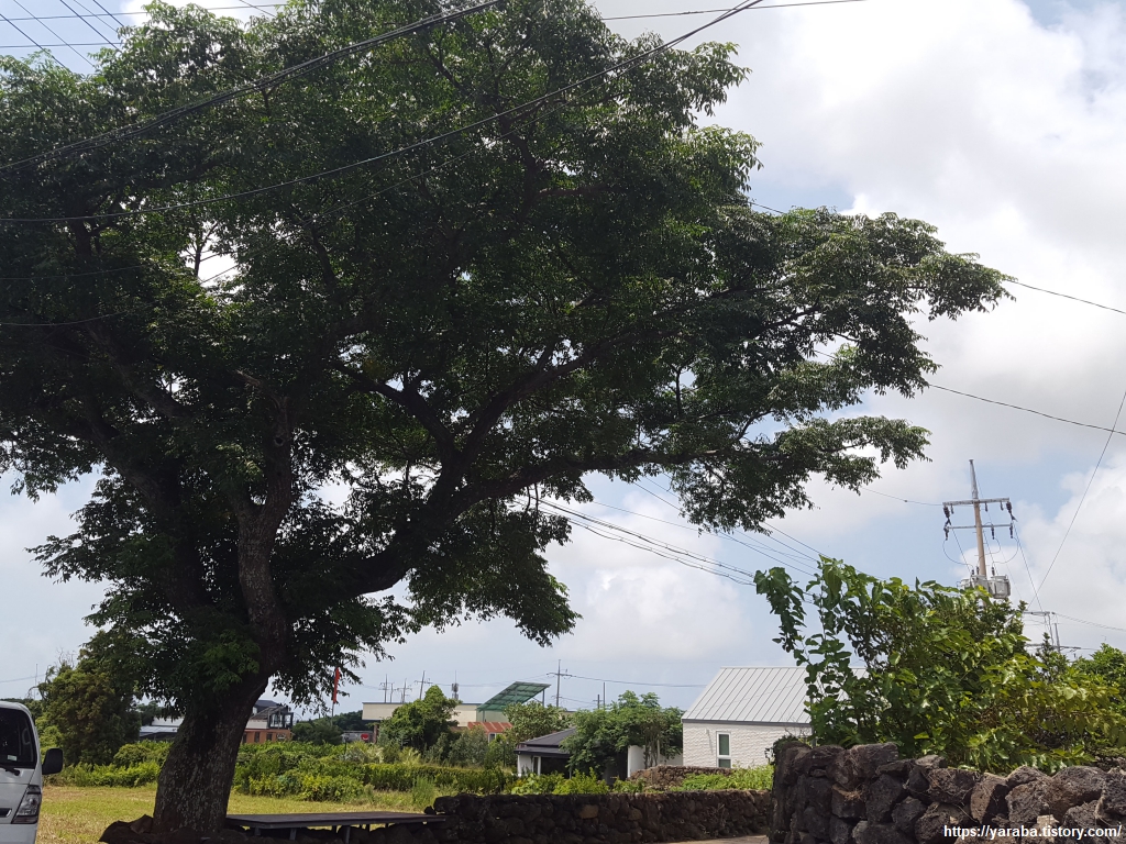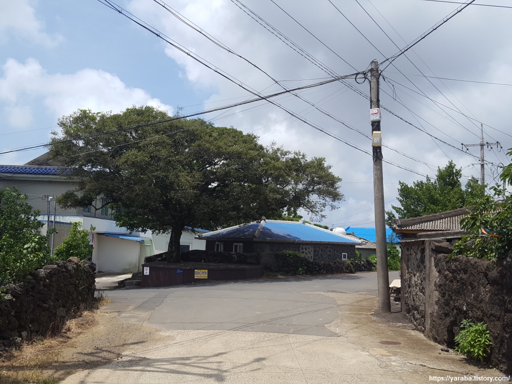 인향동 마을 회관 앞에 있는 커다란 팽나무가 마을 어르신이 반갑게 우리를 맞이해 주시는 느낌이다. 마을을 지켜주고 있다고 믿는 나무를 당산 나무라 하는데 육지에서 느티나무가 그 역할을 많이 하고 있다면 제주도와 남부 지방은 팽나무가 그 역할을 하고 있는 것이다.