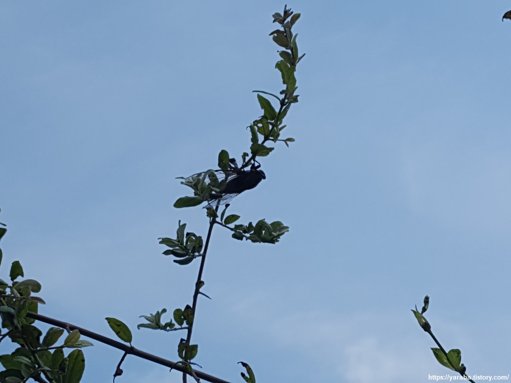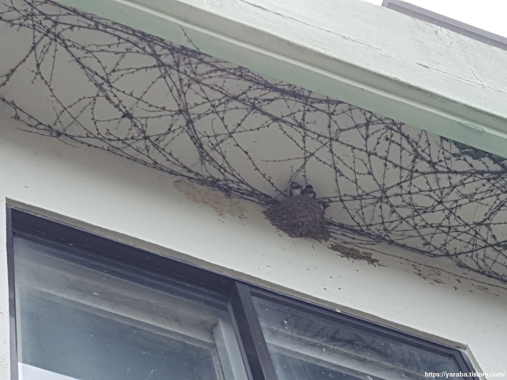 무릉도원 학당 바로 뒤편으로는 좌기동 마을 회관이 자리하고 있는데 양옥식 회관 처마에는 제비 가족이 자리를 잡았다. 봄이면 우리나라를 찾아오는 제비는 번식 이후 9월이면 월동지로 이동하므로 8월 초인 지금은 새끼들이 자립할 수 있도록 부모들도 조바심이 날듯하다. 열심히 벌레를 물어 나르는 부모 제비들의 노고가 공감이 되는 듯하다. 일본 오키나와, 필리핀을 거쳐 인도네시아 서쪽 끝 수마트라섬까지 날아간다고 한다.