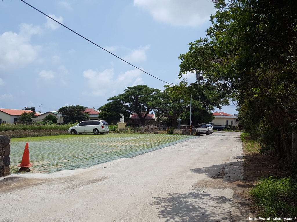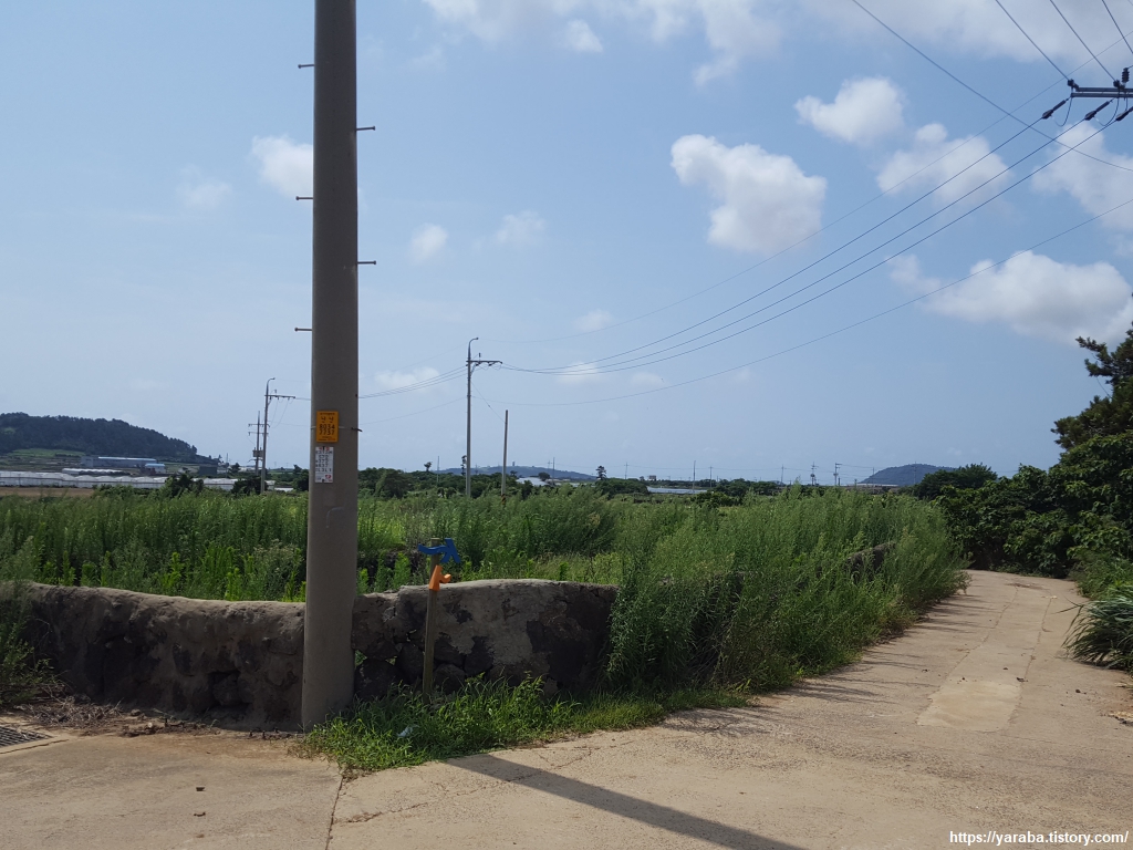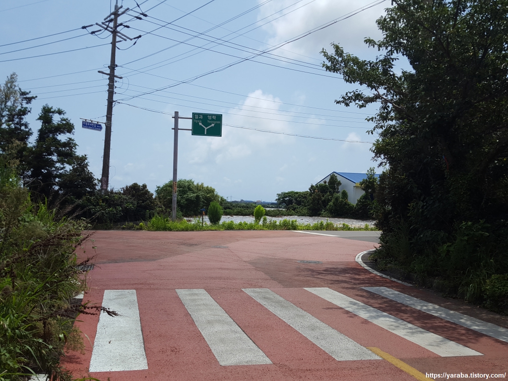 도로를 따라 남쪽으로 내려가던 올레길은 일과리와 영락리로 갈라지는 삼거리에서 영락리로 우회전했다가 다시 마을길로 우회전한다.