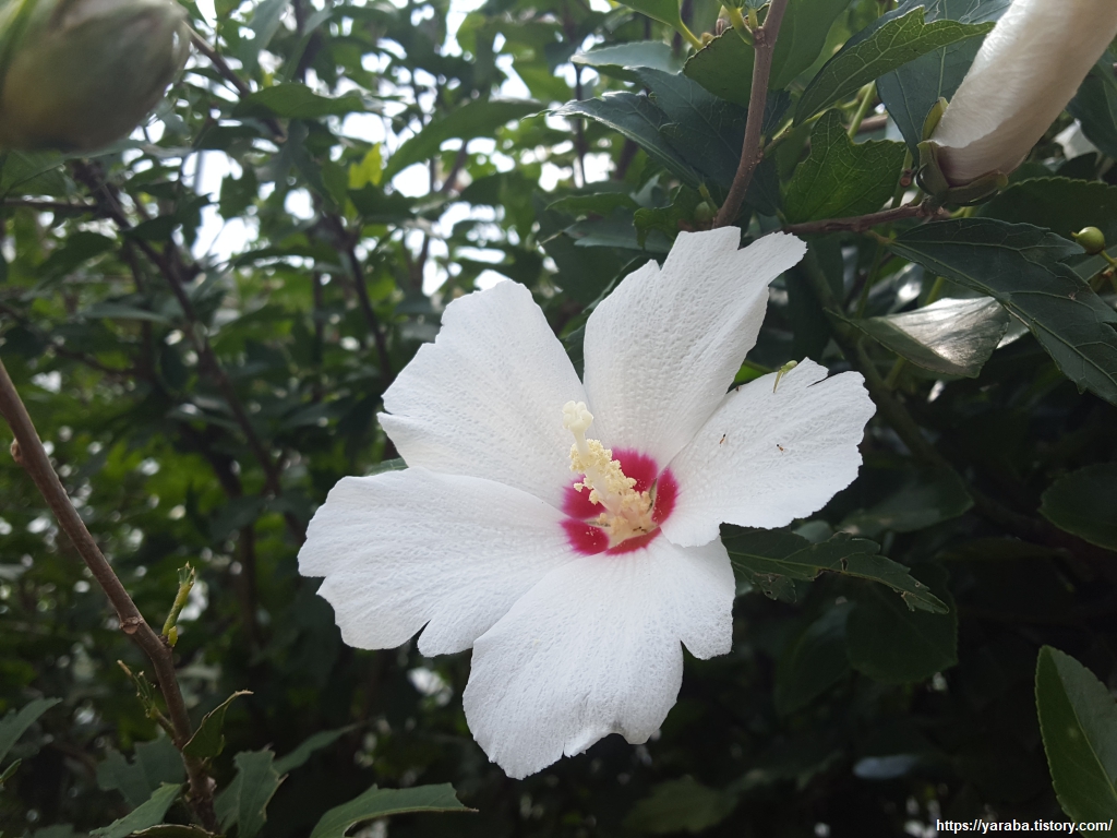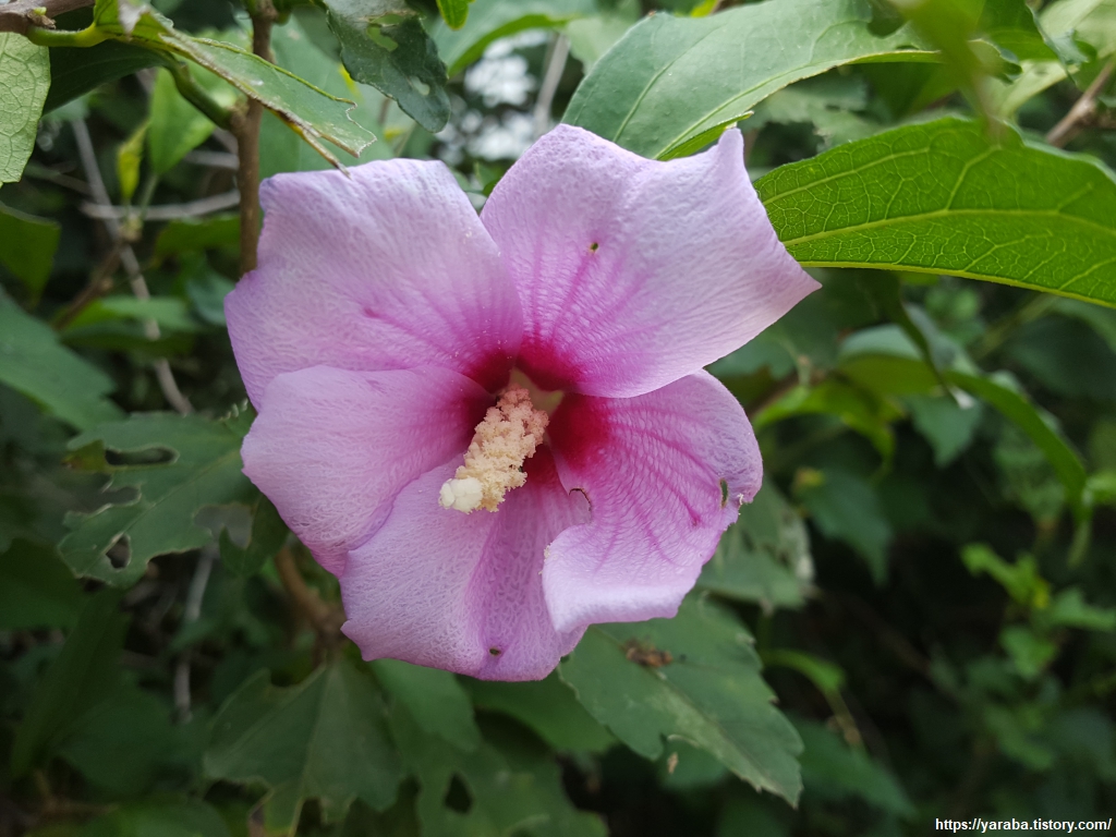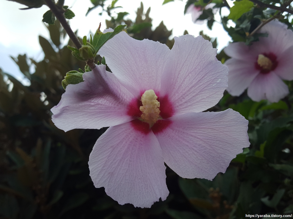 개인적으로 마음으로 채우는 꽃은 보랏빛이 짙게 도는 무궁화이다. 아무래도 어린 시절부터 추억이 쌓인 까닭일 것이다. 추억의 무궁화는 친구 어머니께서 관절이 아프셔서 약으로 드시기 위해 채반에 말리시던 모습, 진딧물에 당하는 나무의 모습이었다. 최근의 추억은 울산 태화강변에서 만난 무궁화동산이었다. 무궁화를 연구하던 학자가 자신의 고향인 울산의 지명을 무궁화 새 품종에 붙였던 사연을 만났던 곳이다.