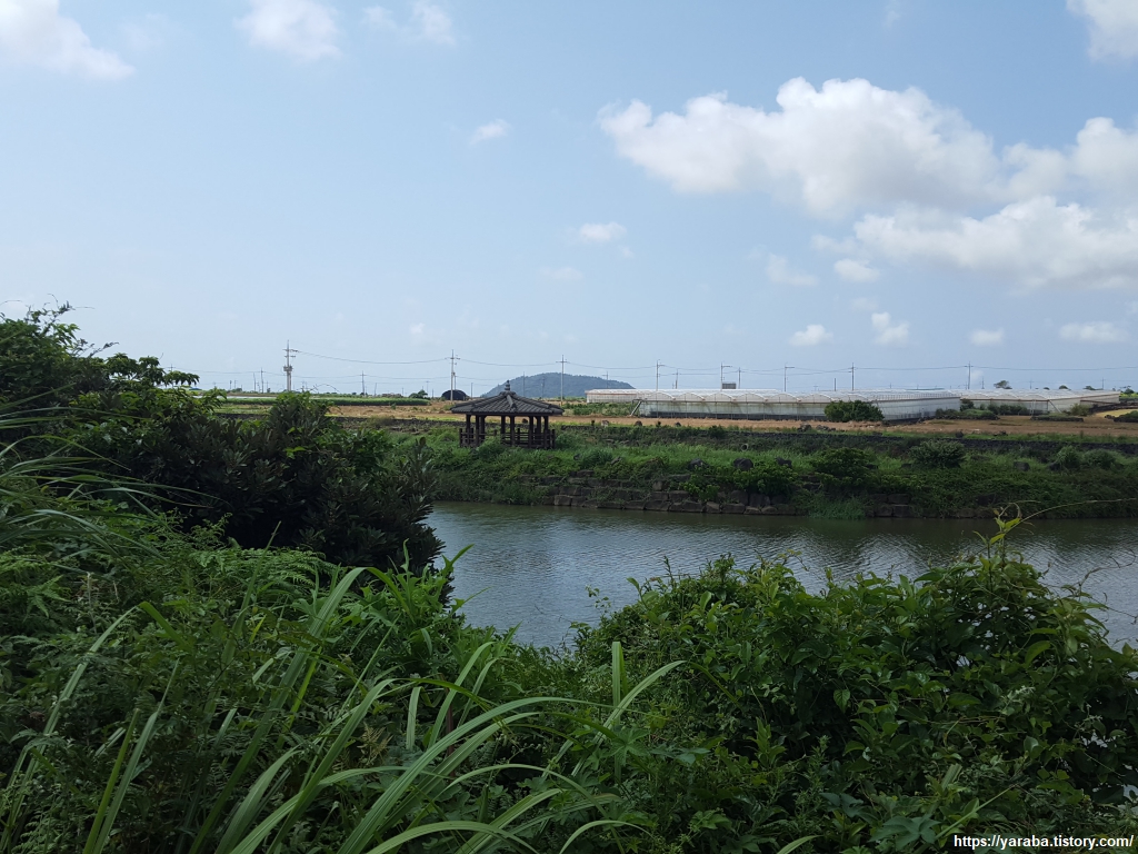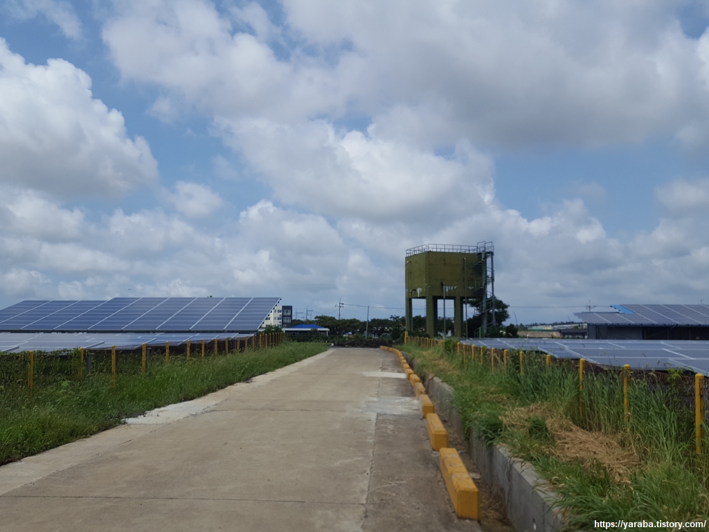 푸른 하늘과 흰구름, 수평선이 아니라 지평선을 바라보며 걷는 들길다운 들길이다. "길 멍"하며 그저 허리춤 스마트폰에서 흘러나오는 음악과 발자국 소리, 그리고 무더위를 뚫는 거친 숨소리만이 귓전을 스친다. 본능적으로 움직이는 두발에 의지해서 "길 멍"하기에 딱 좋은 길이다.
