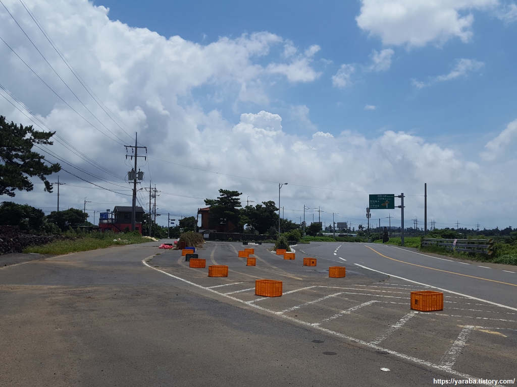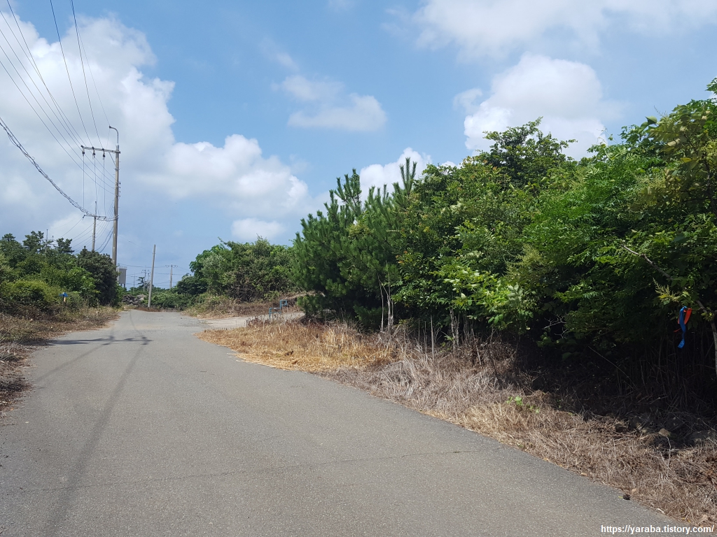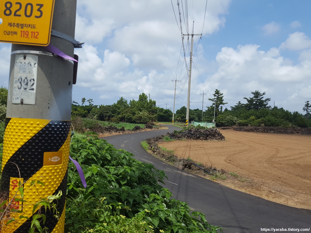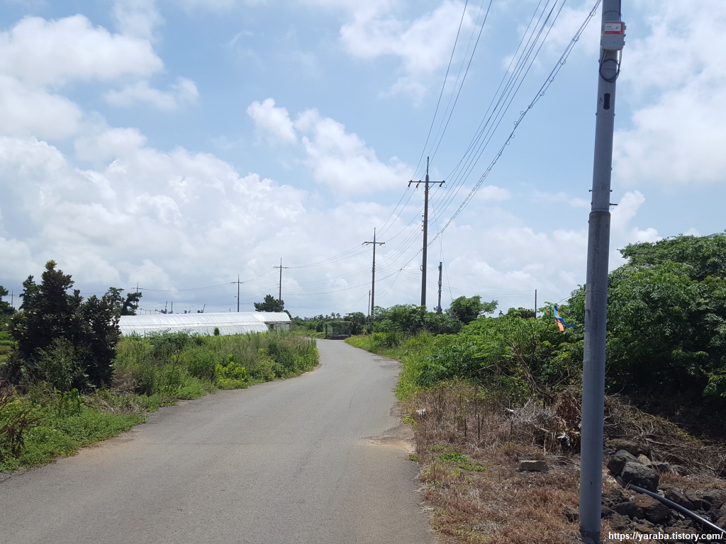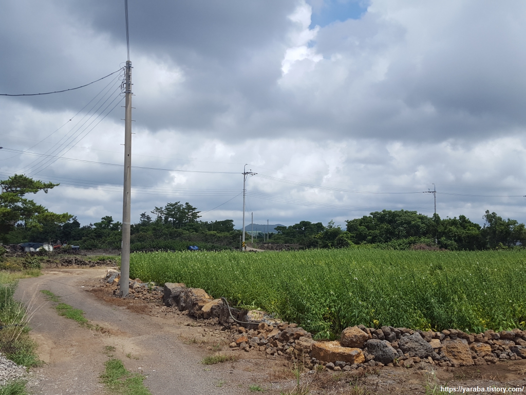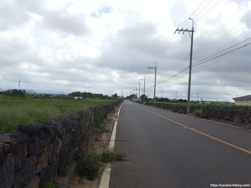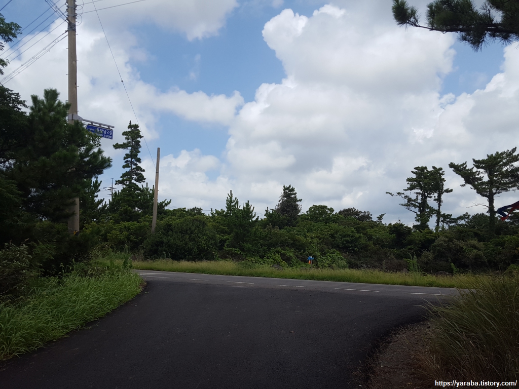 중산간 지역이라 그런지 하늘에는 구름이 가득하다. 구름이 태양을 막아 주는 것은 고맙지만, 길에서 공기에서 훅훅 올라오는 찜통더위는 피할 수 없다.
