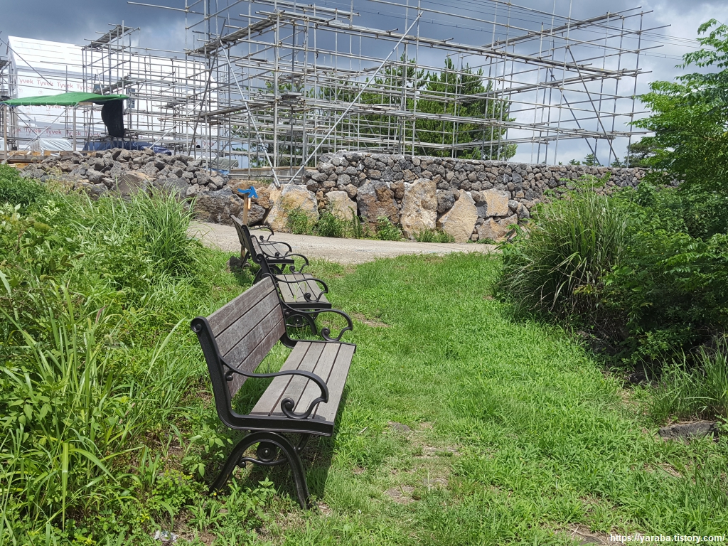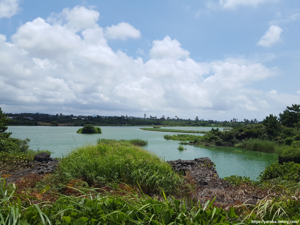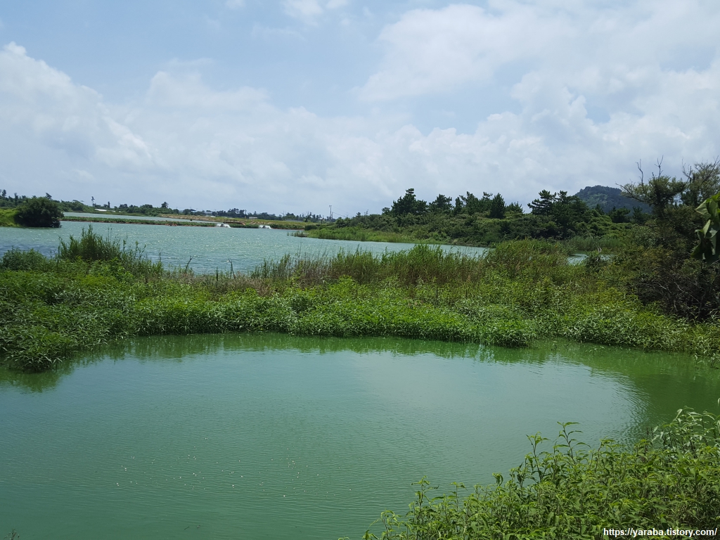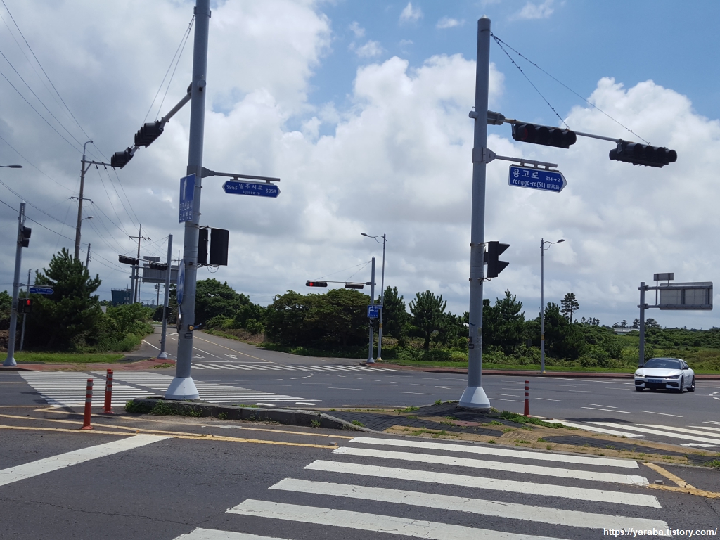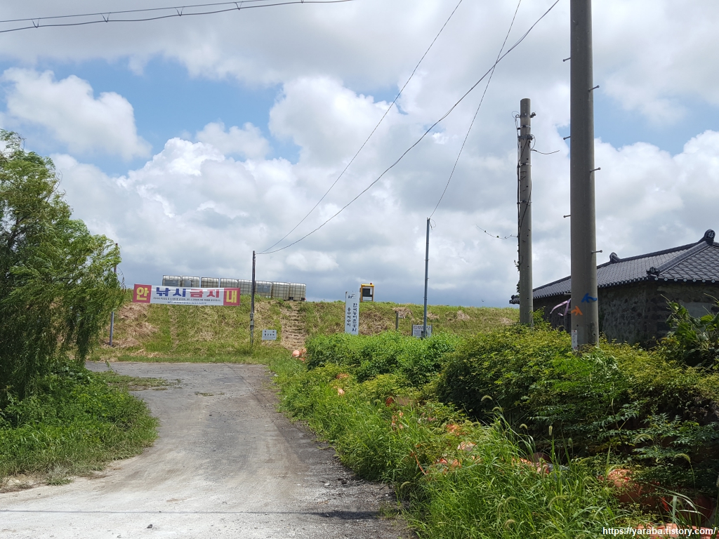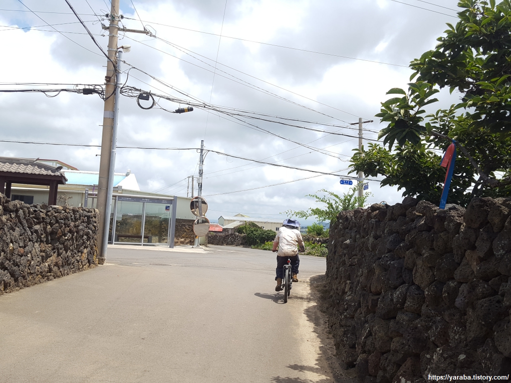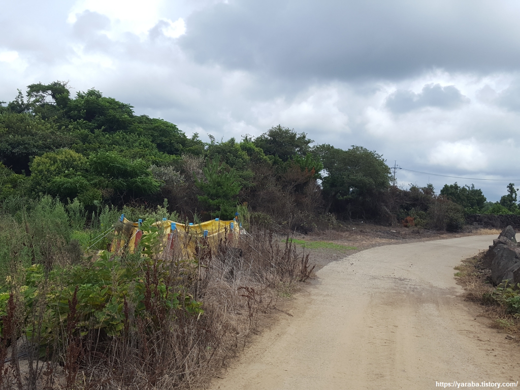 중산간 지역이라 그런지 하늘에는 구름이 가득하다. 구름이 태양을 막아 주는 것은 고맙지만, 길에서 공기에서 훅훅 올라오는 찜통더위는 피할 수 없다.