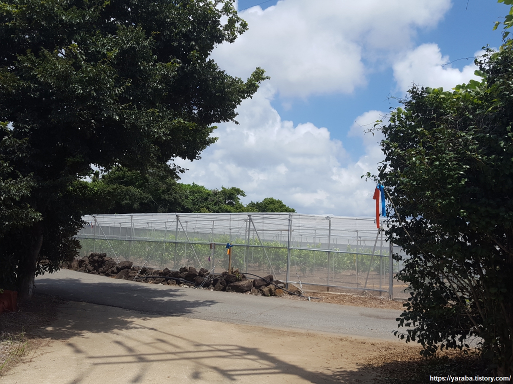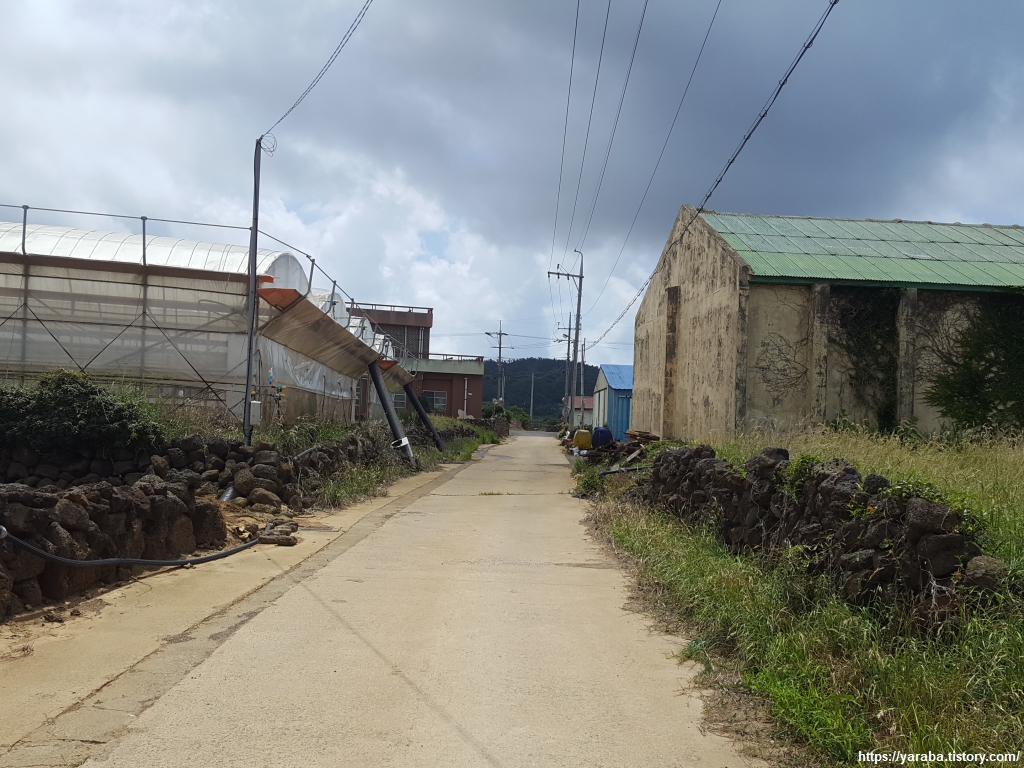밭 전체를 방충망으로 둘러싼 감귤밭도 지난다. 조금은 지루할 수 있는 들길이지만 멍 때리거나 생각 정리에는 딱인 길이다.