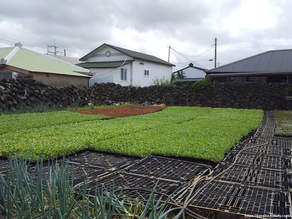 동네분들이 삼삼오오 모여 앉아서 9월초에 파종할 마늘 쪽을 나누며 담소를 나누는 풍경도 있고, 가을 농사를 위해서 농가마다 마당에 모종을 키우는 모습도 있다. 모종을 바닥에서 띄워서 관리하는 모습이 눈에 들어왔다.