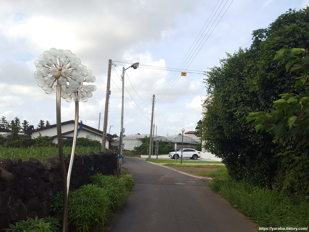 오름 입구에서 저지 예술 마을이라는 표지를 보았는데 예술인 마을답게 마을로 나가는 골목길의 가로등도 예사롭지가 않다.