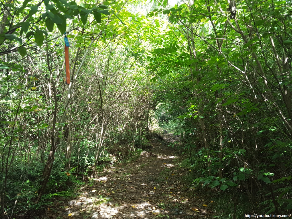 하천은 물이 없는 건천이지만 골이 깊으므로 조심해야 한다. 올레길은 하천변을 따라가기는 하지만 안전하게 하천변에서 조금 떨어진 산책길을 따라 걷는다.