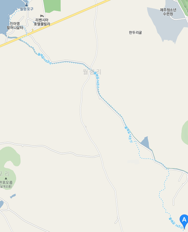 숲길을 지나면 골프장과 금능 농공 단지를 거쳐서 월령리 앞바다로 이어지는 하천을 따라서 해안으로 나간다.