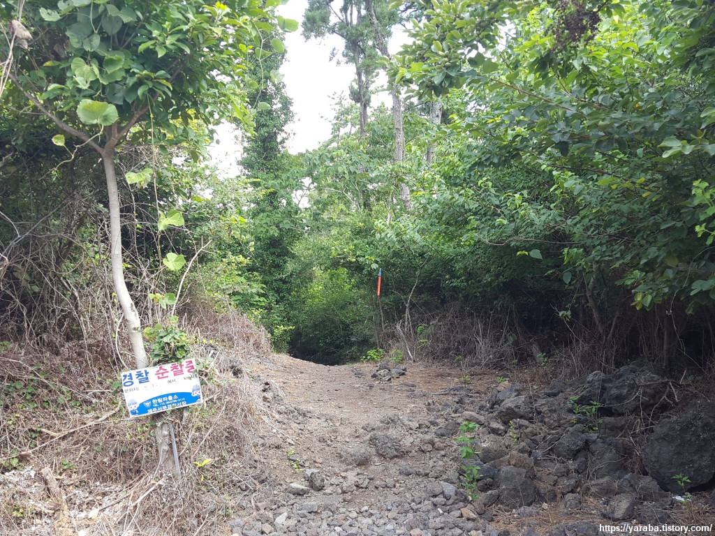 태양도 피하고, 냄새도 좋고, 눈도 평안하고, 새소리도 좋은 숲길이라 생각했지만, "경찰 순찰 중"이란 안내판을 보니 올레길을 혼자 걸으시는 분들 중에는 조금은 두려운 생각이 들 수도 있겠다 싶다.