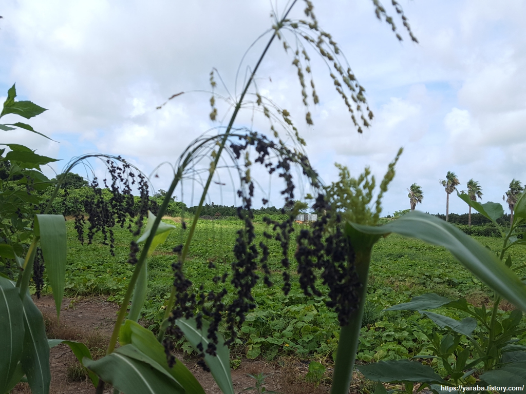 서부 매립장을 지나면 커다란 밭에 단호박을 재배하는 농가 밭 주위에 심어진 생전 처음 보는 특이한 작물을 만났다. 자료도 찾기 어려운 흑수수(Black Sorghum)였다. 수수를 심으면 참새에게 모두 빼앗기는 현실이다 보니 수수에 대한 애틋함이 있는 것도 사실이다. 그런데, 흑수수라니 신통방통한 작물이다. 검게 익은 수수를 보노라면 커다란 개미를 보는 것 같기도 한다.