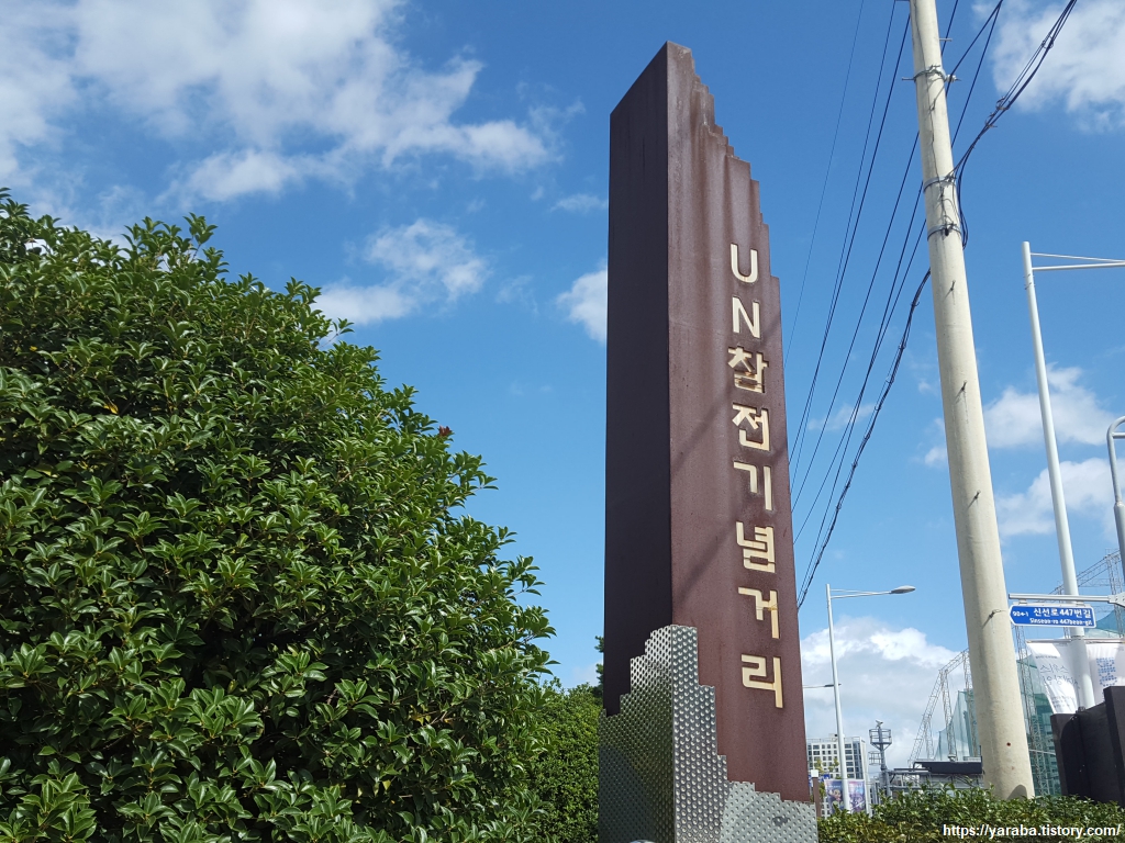신선로 도로를 따라 공원에 도착하면 UN 참전 기념 거리라는 커다란 조형물이 우리를 맞는다.