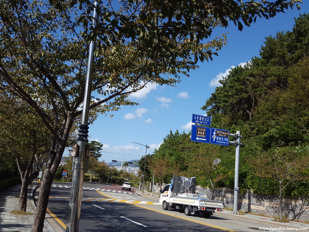 오륙도 해상 공원에서 신선대와 동명오거리를 지나 평화 공원까지 가는 길은 도로변을 따라 걷는 여정이다.