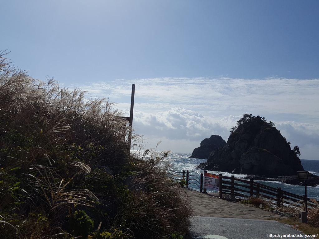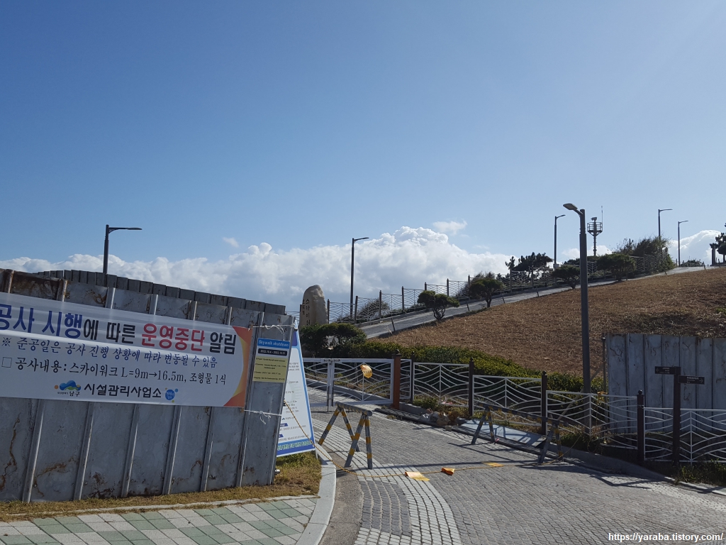 긴 시간 부산 시내를 가로지른 버스는 오륙도를 바라보는 전망 좋은 정류장에 우리를 떨구어 놓고 제갈길을 간다. 해파랑길 걷기를 시작했던 작년 가을 왔던 곳인데 1년 만에 이제는 남파랑길 걷기로 다시 오니 감회가 새롭다. 이곳의 명물인 오륙도 스카이워크를 다녀오려고 했는데 지금은 공사 중이란다. 일단 스카이워크 우측으로 내려가서 남파랑길과 해파랑길의 시작점으로 향한다.