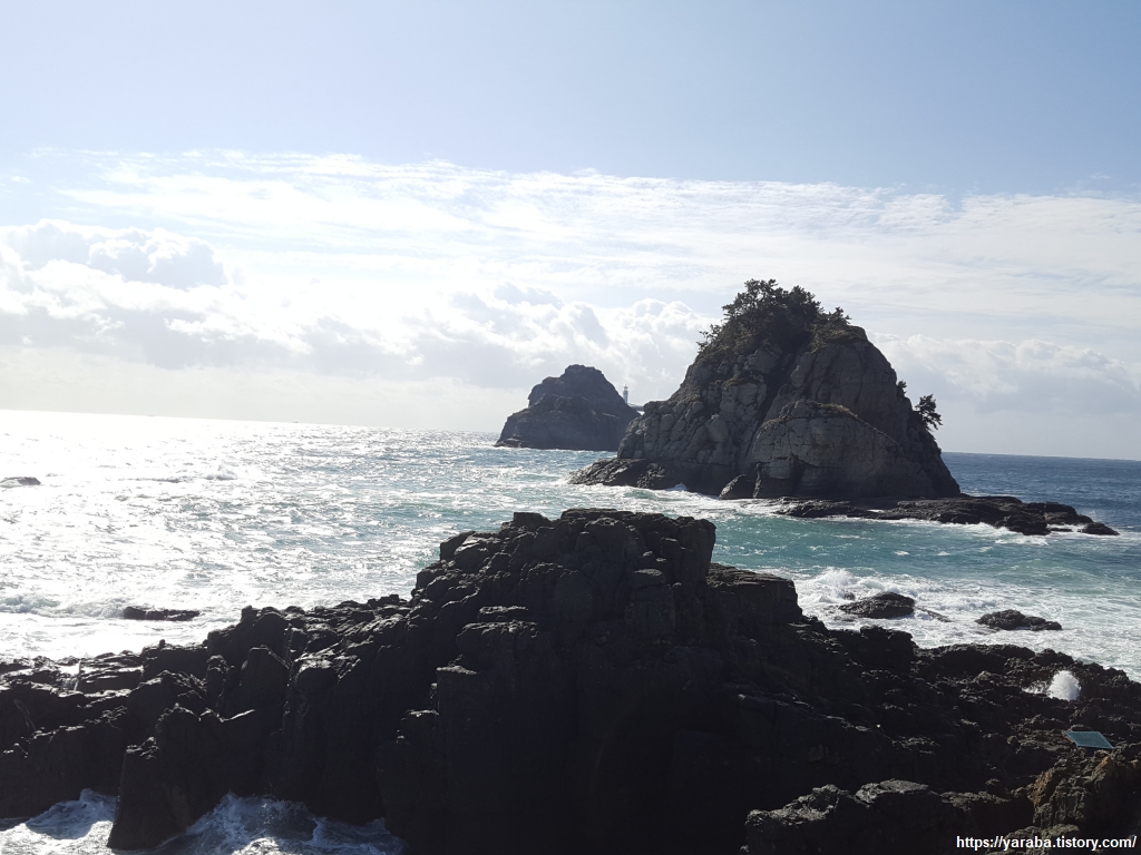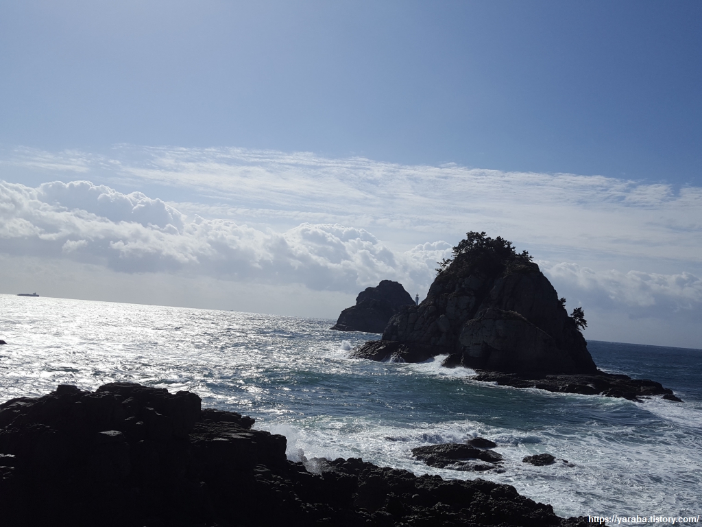 아침 햇살이 은빛 물결을 만드는 오륙도 바다는 바람은 모자를 붙잡고 있어야 할 정도로 강하지만 쾌청한 하늘 아래 눈부신 풍경을 선사한다. 하얀 포말을 일으키며 부서지는 파도는 서늘한 바람과 함께 어이구! 하며 몸을 추스르게 한다.