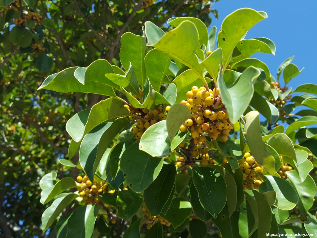 우리가 앞으로 따라서 걸어가야 할 신선대산복로는 왕벚나무로 가로수가 심어져 있어 봄이면 아름다운 풍경을 뽐내지만 성모병원 근처 길 초입에는 제주에서 만났던 먼나무가 아름다운 열매와 함께 그 존재를 드러내고 있다.