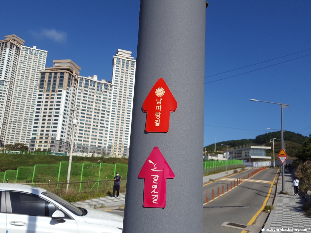 남파랑길 1코스와 갈맷길 표식이 나란히 길을 안내한다. 갈맷길은 3-1코스이다.