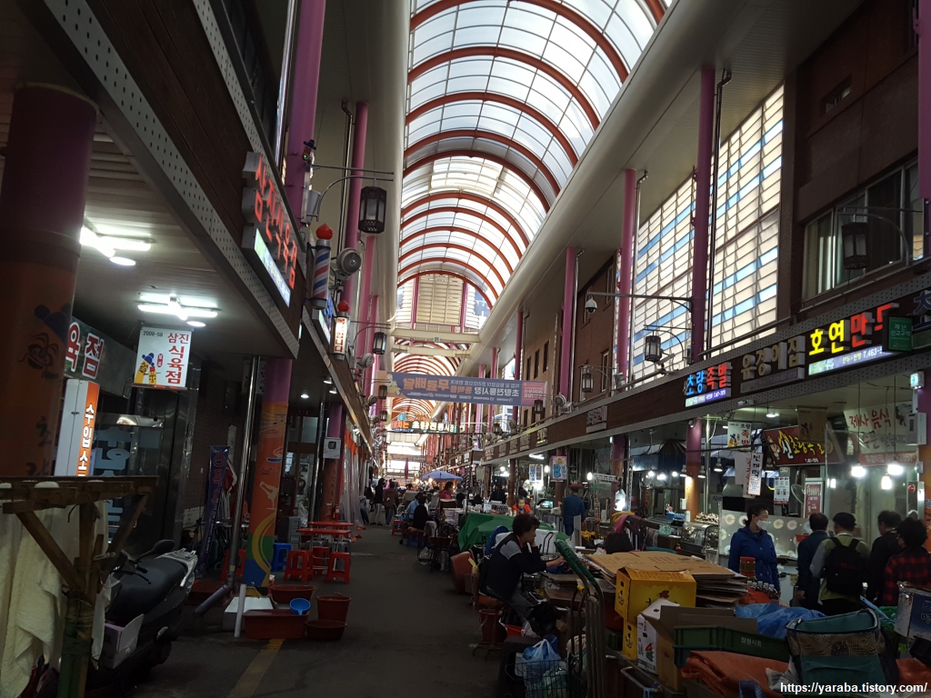 지도를 보니 남파랑길의 원래 경로에서 한참을 내려와 있었다. 초량 전통 시장을 가로질러 서쪽으로 이동하기로 했다. 부산역 바로 앞에 있는 시장이니 부산의 관문이라 할만하다. 아직 갈길이 먼 우리로서는 그저 군침 삼키며 아이쇼핑하는 시간이었다.