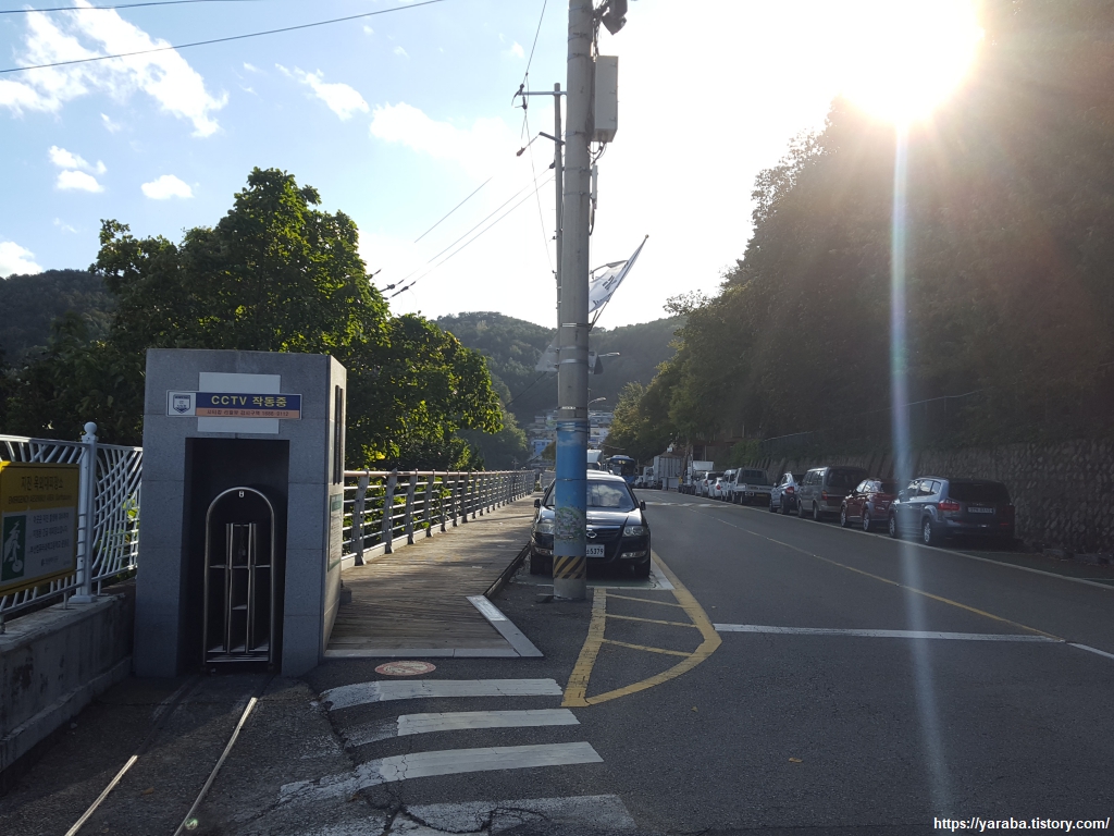 비를 피할 수 있는 버스 정류장을 설치할 수 없는 좁은 길에 버스 정보 안내기가 세워져 있는 모습은 부산이기 때문에 만날 수 있는 풍경이 아닌가 싶다. 좁은 길에 주민들에게 꼭 필요한 첨단 시설을 단순하게 세운 모습이 참 지혜로운 선택이다라는 생각을 해보았다.
