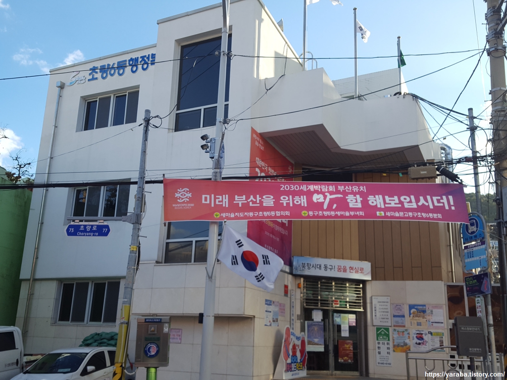 동사무소 앞에 걸어놓은 "마, 함 해보입시더!"하는 박람회 유치 구호에 잠시 미소 짓고 길을 이어간다.