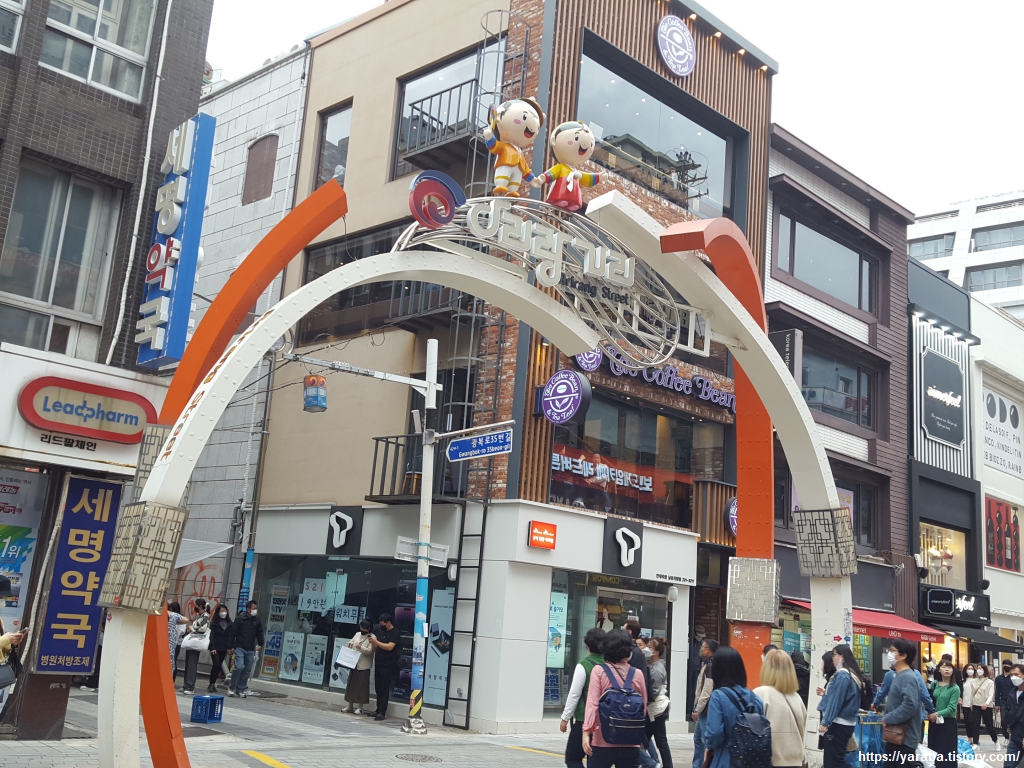 남포동은 서면과 함께 부산에서 유동 인구가 가장 많은 지역 중 한 곳이다. 서울의 명동과 비슷한 분위기이다. 그런데, 남파랑길은 이 광복로로 가지 않고 우회전하여 우리는 그만 광복로로 좌회전하고 말았다. 당연히 넓은 길로 가겠지 하는 마음도 있었고 아직 남파랑길 표식 찾기에 익숙하지 않은 까닭도 있었다.