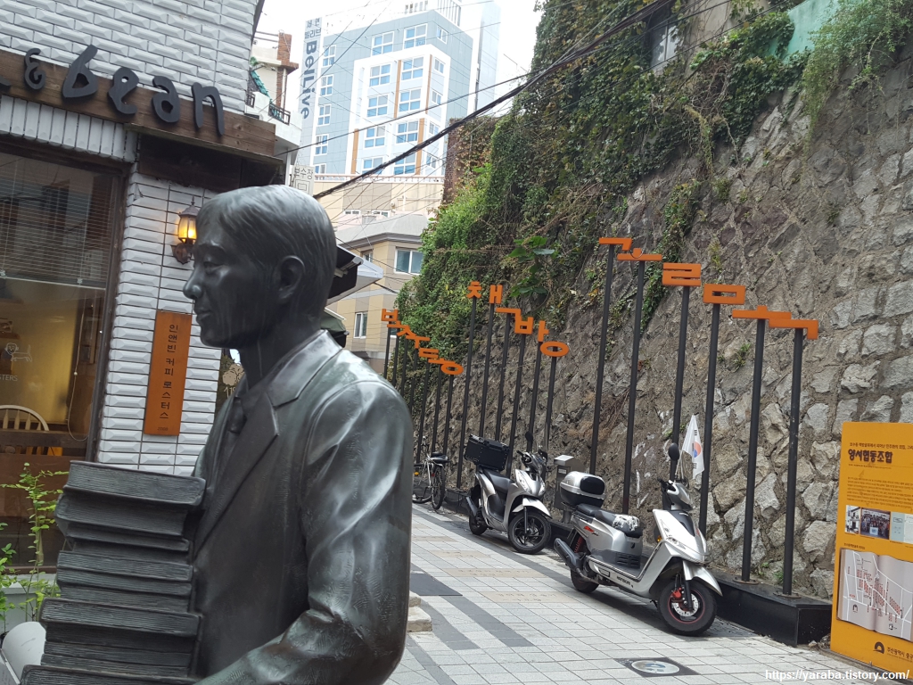 보수동 책방 골목에 도착했다. 학생 시절에도 직장 초년생 시절에도 서울 청계천 헌책방 골목은 교보 문고나 종로 서적과 같은 유명 서점보다도 자주 찾던 곳이었다. 지금이야 헌책도 온라인 마켓으로 활발히 거래되는 상황이니 오프라인 헌책방이 자리할 공간이 많지 않은 것은 사실이다. 그럼에도 아이들을 데리고 이곳을 찾았을 때는 선물로 만화책 시리즈를 구입해 주기도 했었다. 부담 없이 책을 선물할 수 있었던 곳인데 이곳도 예전만큼은 아닌 모습이었다. 상인에만 책방 골목을 맡겨 둔다면 자본 논리에 밀려 이 골목도 유지하기가 어렵지 않을까 싶다.