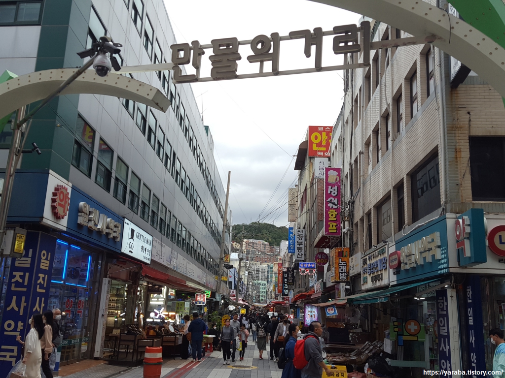 국제 시장 속살을 만나는 것은 잠시 후로 미루고 계속 대청로 도로를 따라서 서쪽으로 이동한다. 언뜻언뜻 보는 시장 골목은 살짝 보기만 해도 사람들로 복잡하다.