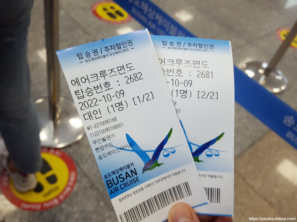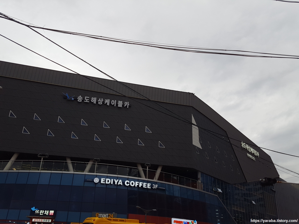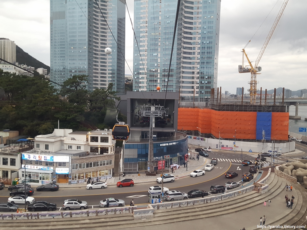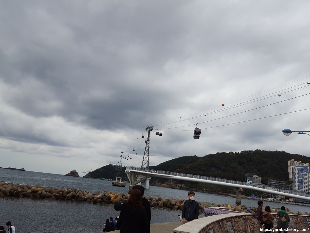 해가 뉘엿뉘엿 진고 있는 시각, 송도 해수욕장을 돌아 건너편 암남동 감천항에 있는 숙소까지 가기에는 무리가 있어 보였다. 3 Km가 조금 넘는 거리를 단축하고 체력을 아낄 수 있는 방법으로 케이블카를 타고 바다를 건너가기로 했다.