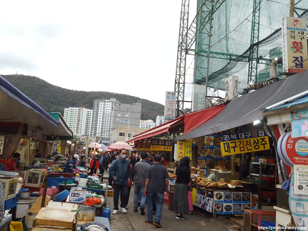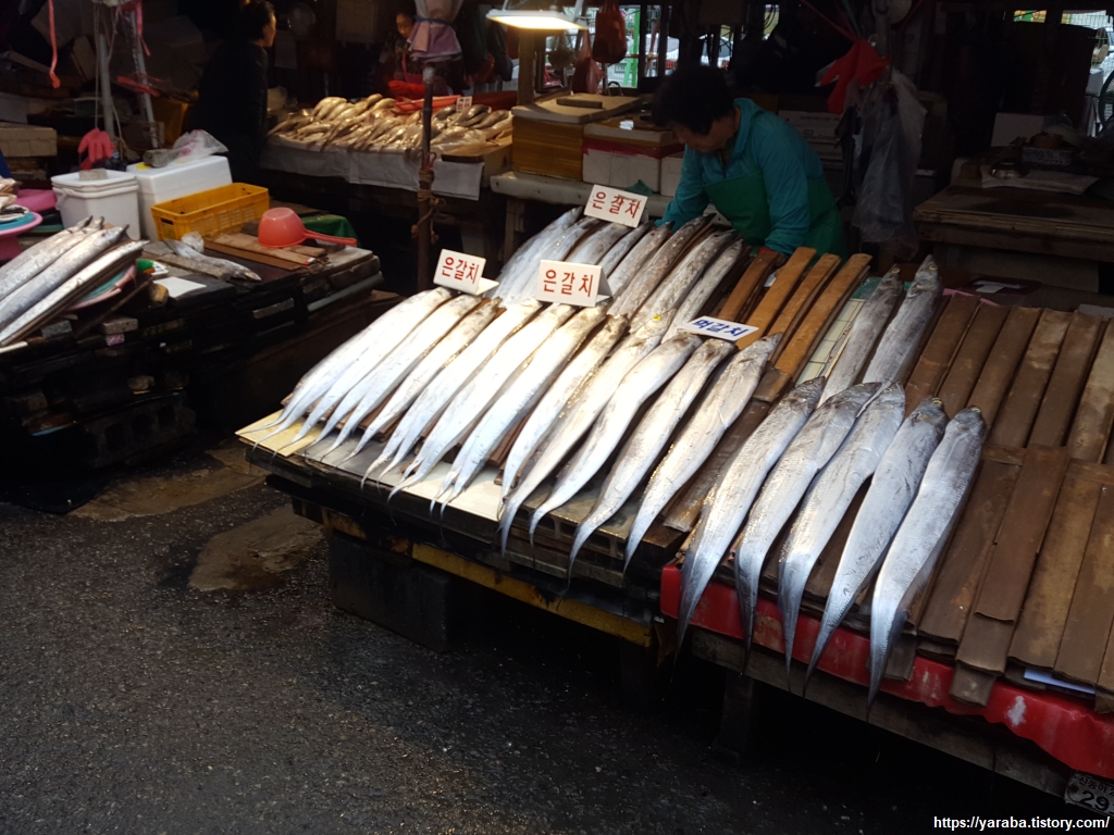 사람이 넘쳐나는 것은 자갈치 시장도 마찬가지였다. 우스운 이야기이지만 자갈치라는 과자도 있는데 자갈치는 갈치의 일종일까? 하는 호기심이 생겼다. 그런데, 알고 보니 이곳이 자갈이 많았던 곳이라 자갈치라 부르게 되었다고 한다.