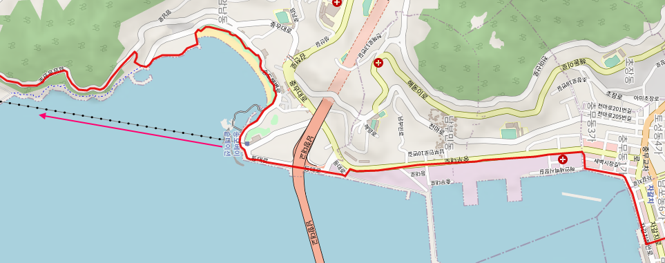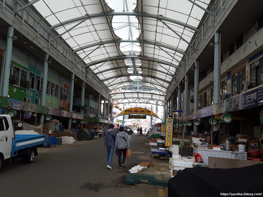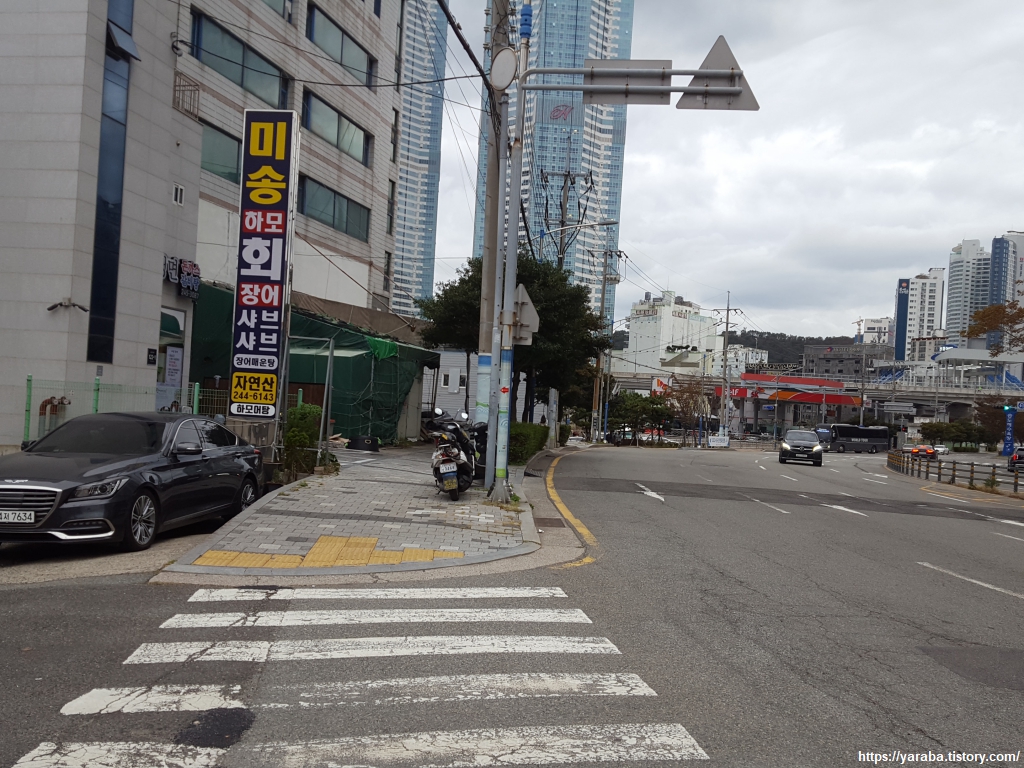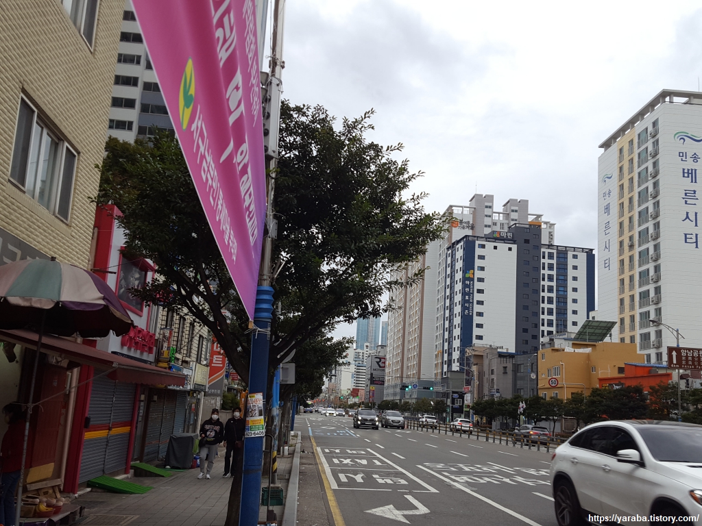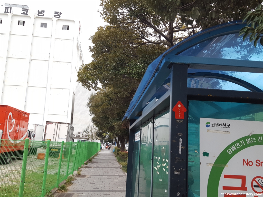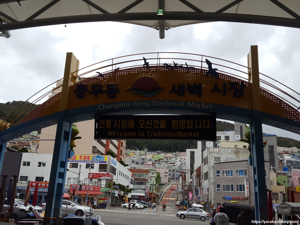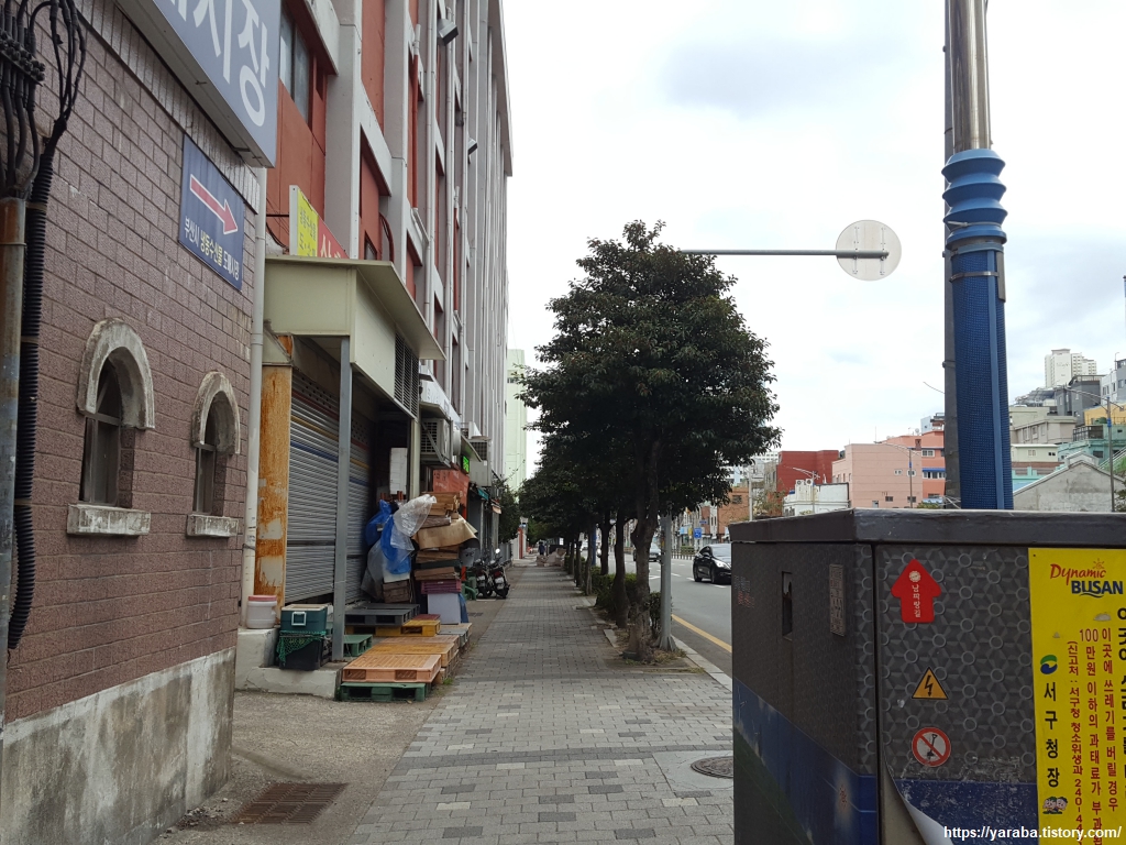 해안 시장을 따라 걸어왔던 남파랑길은 충무동 새벽 시장에서 우회전하여 충무대로로 나간다. 해안으로 더 진행하면 이제는 거대한 냉동 창고들을 만나기 때문이다.