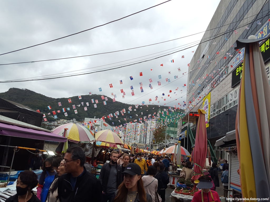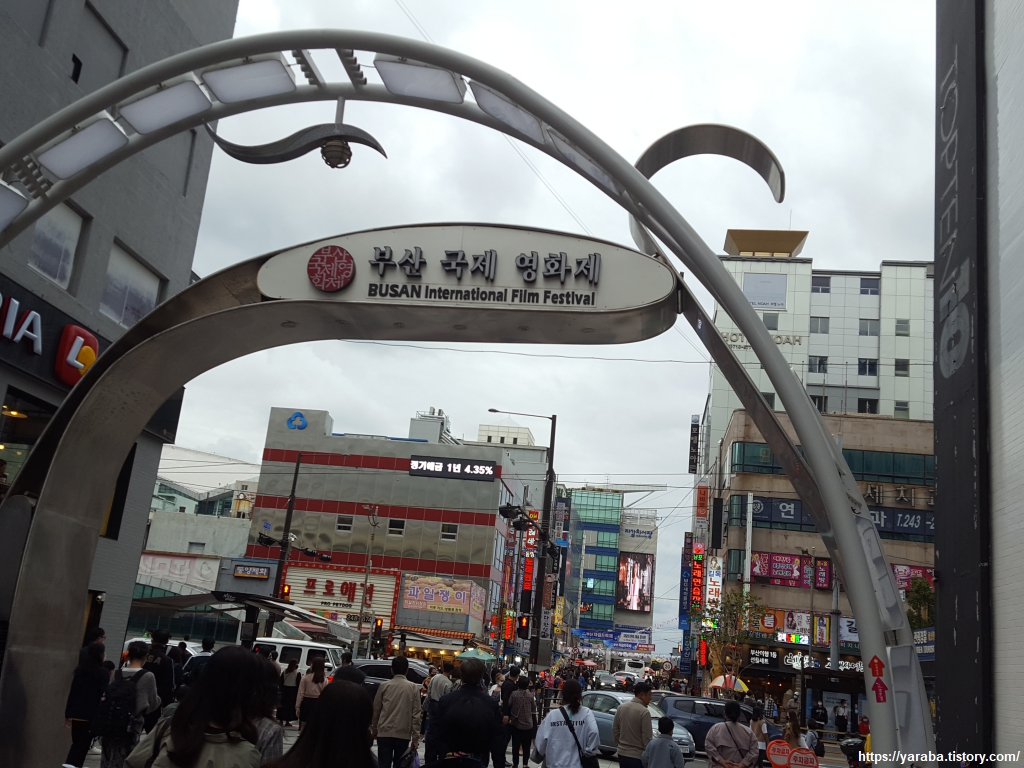 국제 시장에서 자갈치 시장으로 내려가는 길은 그야말로 인산인해다. 때마침 부산 국제 영화제가 한창이라 거리에는 영화제 홍보 부스도 설치되어 있었다. 그렇지만, 사람들이 워낙 많아서 길을 지나는 것 자체가 정신이 나갈 정도였다.