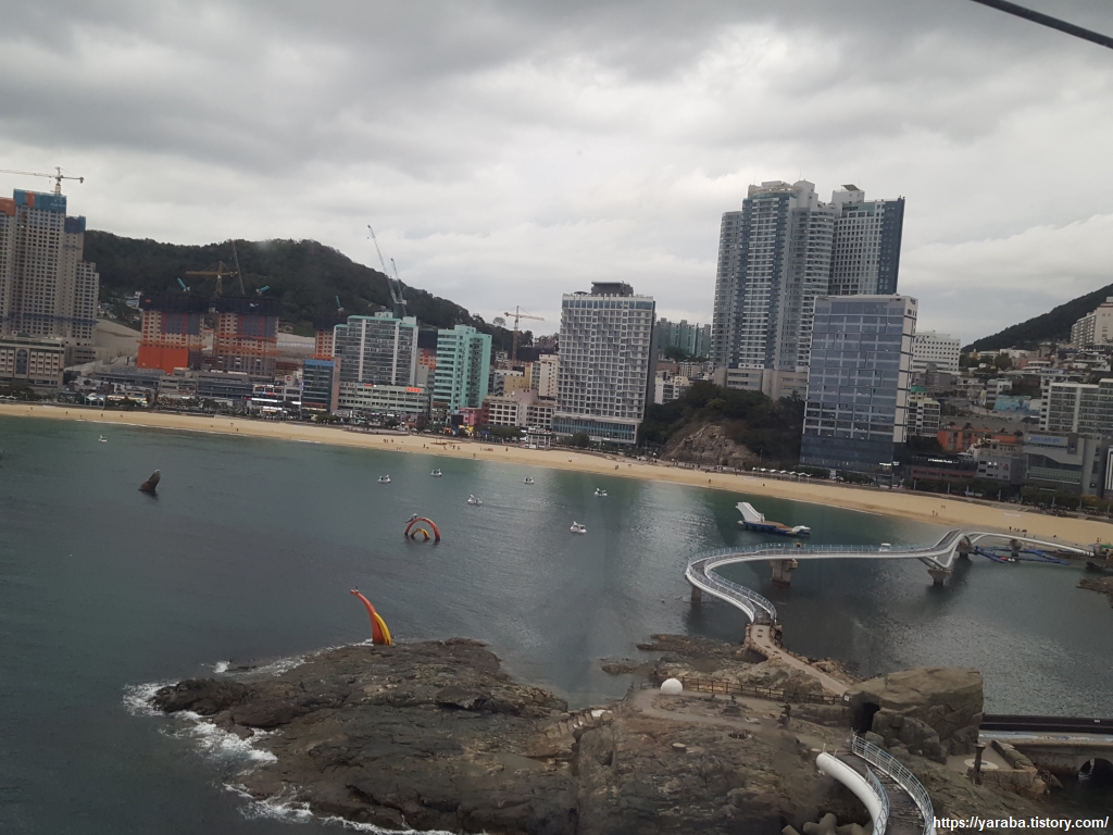 우리가 케이블카를 탔던 방면의 풍경이다. 송도 해수욕장과 남항 대교도 안녕이다.