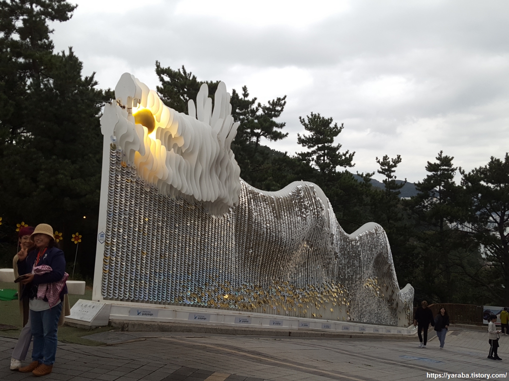 가는 길에는 부산 비엔날레에 출품되었던 수준 높은 조각 작품들을 만날 수도 있다. 위의 그림은 이영춘 작가의 2001년 작품인 "잃어버린 시간"으로 현재의 문명, 문화, 시간에 대한 생각을 말로 비유해서 표현했다고 한다.