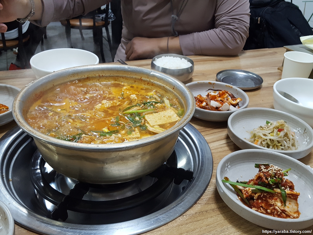 해도 지고 캄캄한 가운데 공원 후문을 통과했지만, 케이블카로 경로를 단축시키지 않았다면 이것도 불가능했을 것이다. 오늘은 정말 쫄깃쫄깃한 여정이었다. 공원 후문을 나오면 수산 가공 선진화 단지에서 감천 사거리까지 이어지는 원양로 도로를 따라서 북쪽으로 이동한다. 원양로라는 도로 이름답게 이곳은 원양 어선들이 자유롭게 들어올 수 있는 항구에, 원양 어선을 수리해주는 조선소에, 국내 최대라는 부산 공동 어시장의 3배 규모라는 국제 수산물 도매 시장, 그리고 원료를 보관하는 거대한 냉장, 냉동 창고와 수산 가공 선진화 단지까지 수산업의 모든 것이 집약된 곳이다. 아무튼 원양로와 암남공원로가 만나는 지점 인근 식당에서 동태탕으로 하루의 피로를 풀었다. 먹어보니 내 입맛에는 동태탕은 집에서 끓여 먹는 것이 맛도 양도 최고가 아닌가 싶다.