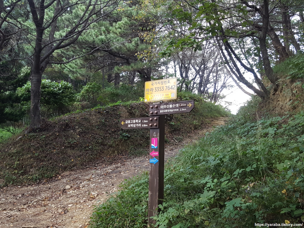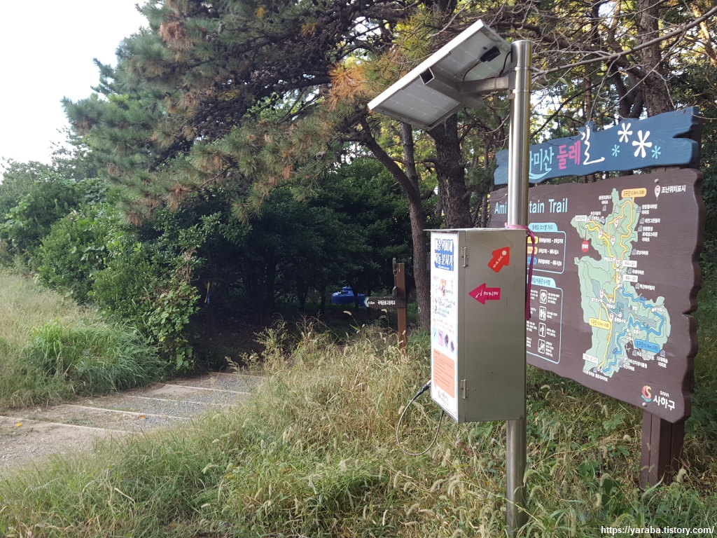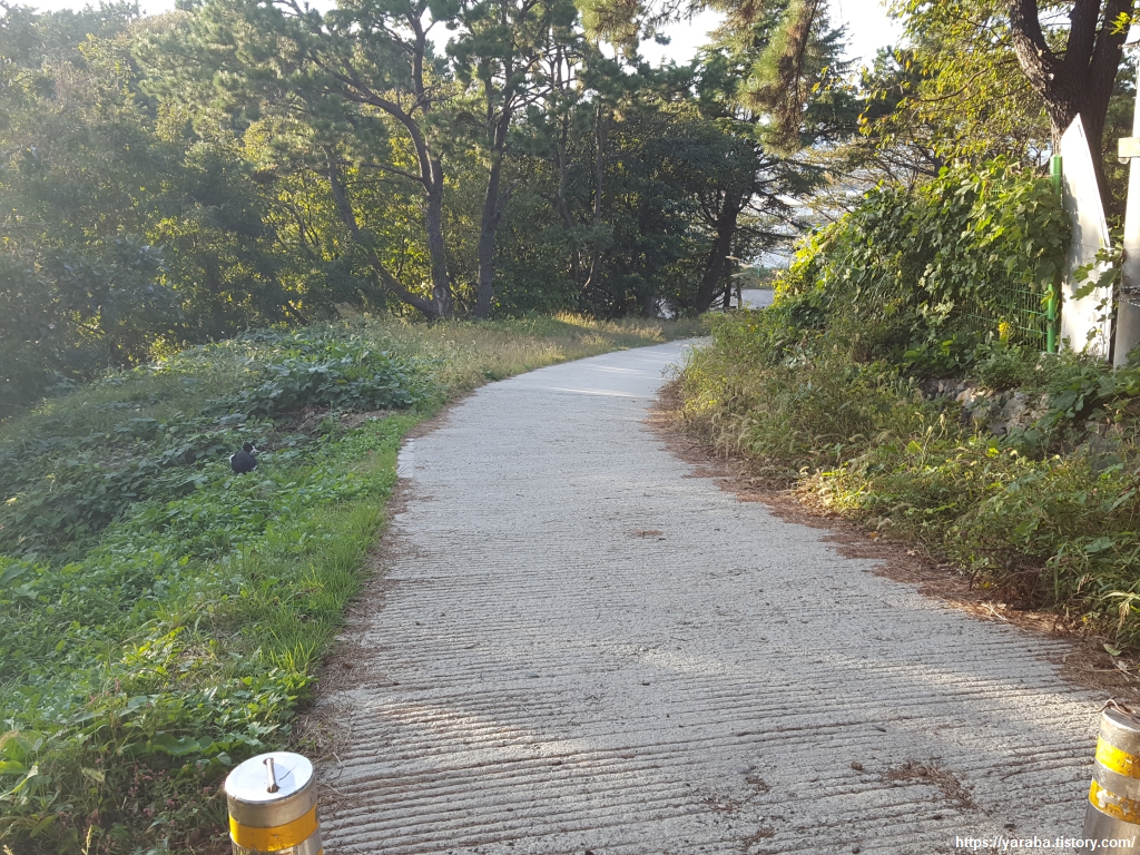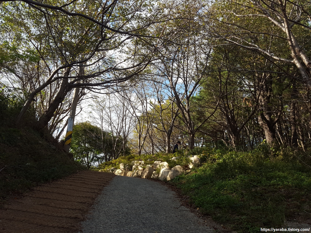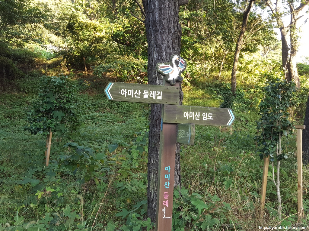 아파트 단지 끝에서 본격적으로 아미산 걷기를 시작한다. 아미산 정상으로 이어지는 등산로가 있기는 하지만 남파랑길은 넓은 산책로를 따라서 길을 이어간다.