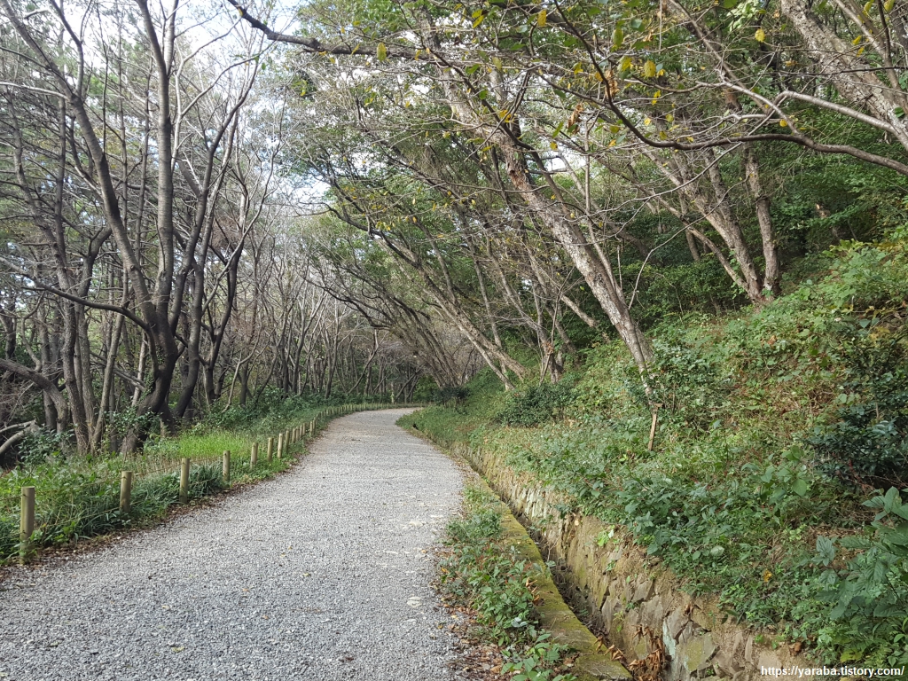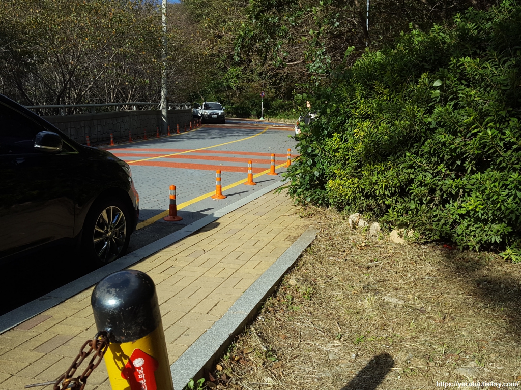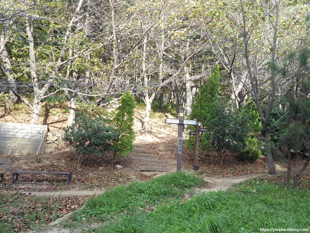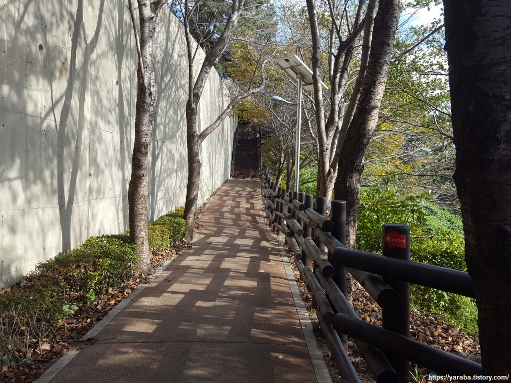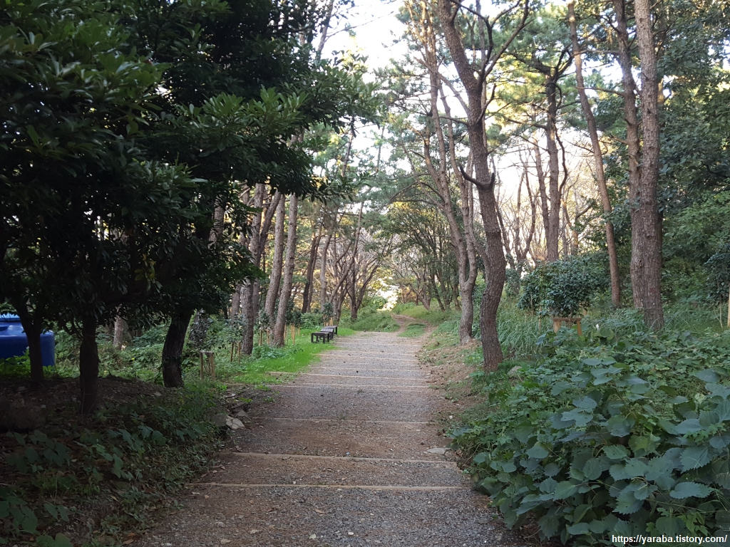 아파트 단지 끝에서 본격적으로 아미산 걷기를 시작한다. 아미산 정상으로 이어지는 등산로가 있기는 하지만 남파랑길은 넓은 산책로를 따라서 길을 이어간다.