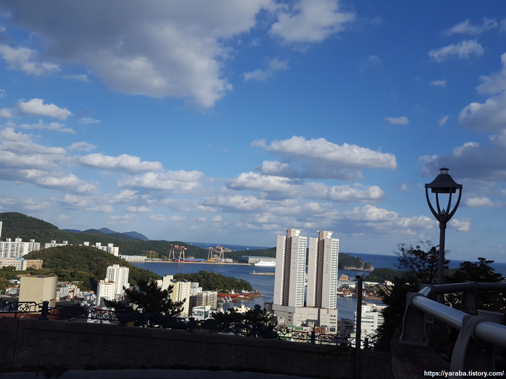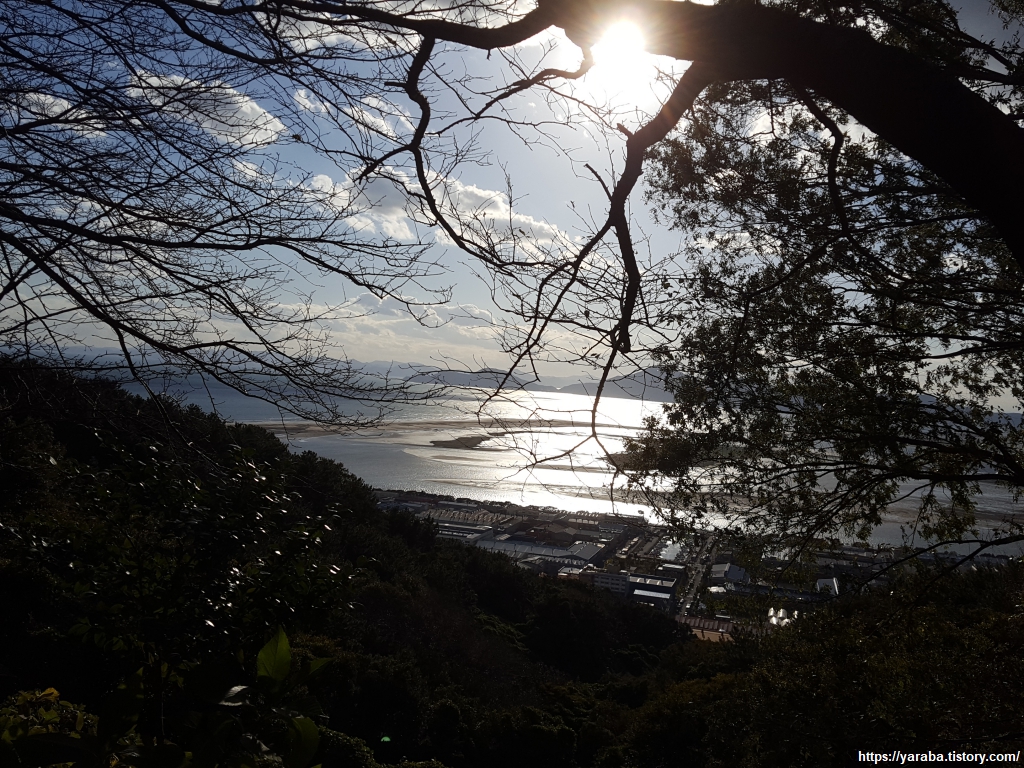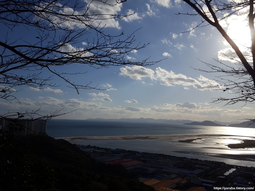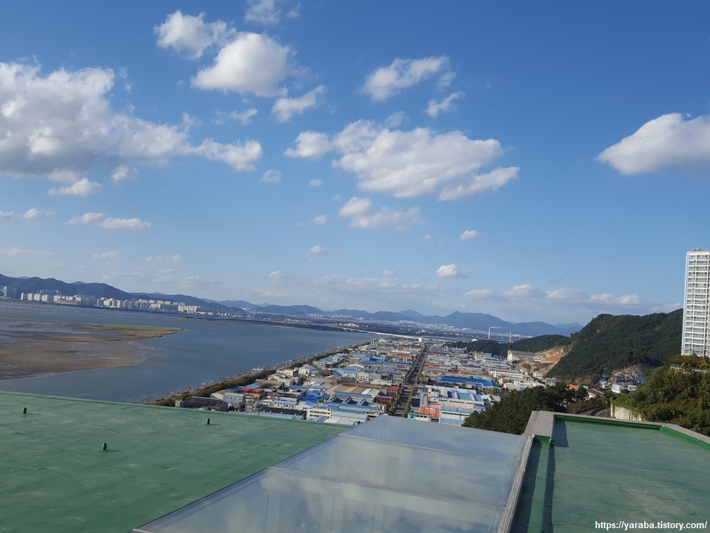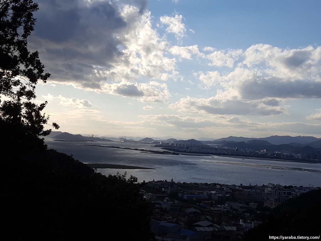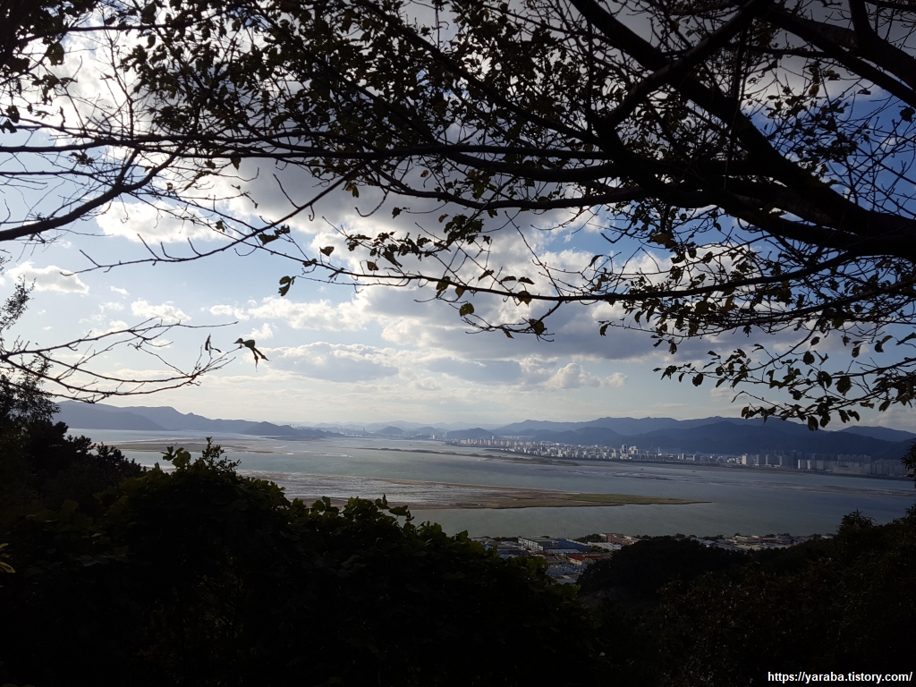 아미산 산책로 입구 직전에서는 몰운대와 다대포 해수욕장은 보이지 않지만 우리가 지나왔던 다대포항과 그 뒤로 두송반도가 한눈에 들어온다. 아파트 단지가 없었을 때는 몰운대도 눈에 들어오지 않았을까 싶다.