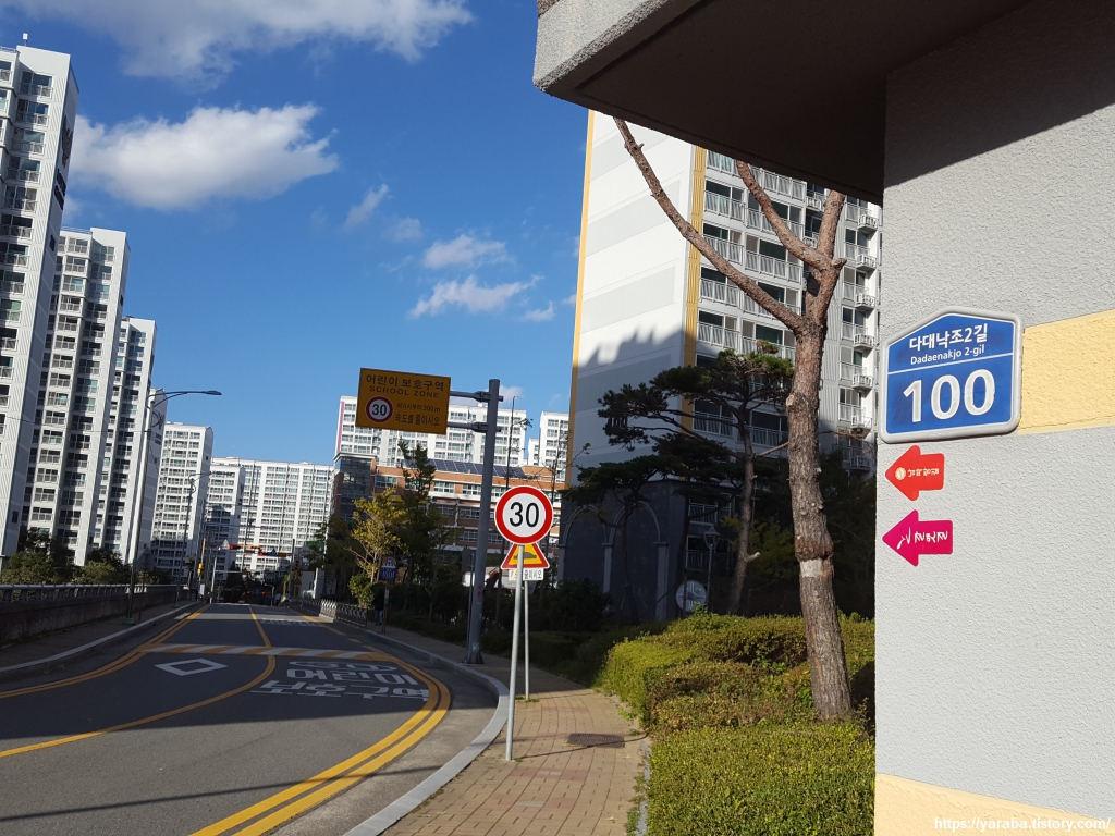 아미산 전망대를 지나면 아파트 단지를 가로질러서 길을 이어간다. 갈맷길 4-3코스와 함께하므로 이곳에서는 갈맷길 표식을 참조해도 좋다. 길 이름이 다대낙조길이다. 석양, 낙조, 일몰, 노을, 해넘이 무슨 말을 들어도 감성 충만하게 하는 단어들이다. 내일 해가 다시 뜨겠지만 오늘의 해는 보내야 하는 아쉬움일까? 해를 보내며 하루를 돌아보는 까닭일까?