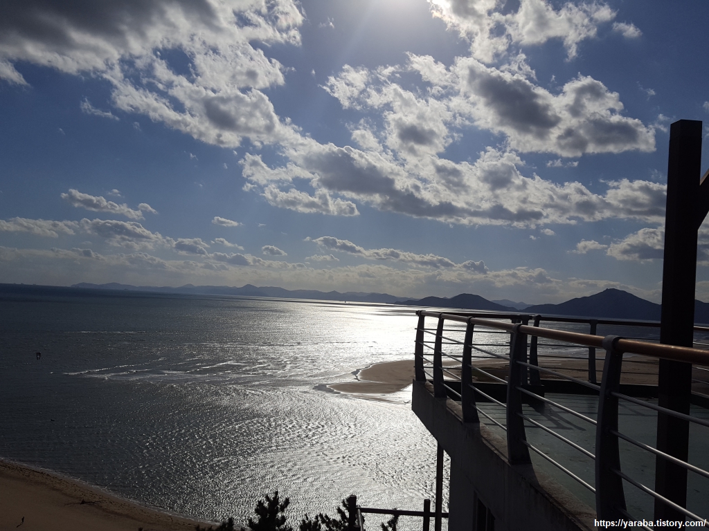 해가 더 내려가면 붉은빛이 도는 환상적이 노을을 볼 수 있지만, 아직 붉은빛이 없는 석양이 주는 풍경도 장관이다. 구름의 두께를 관통하는 강렬한 오후의 태양이 만들어 내는 은빛 향연은 그야말로 환상적이다.